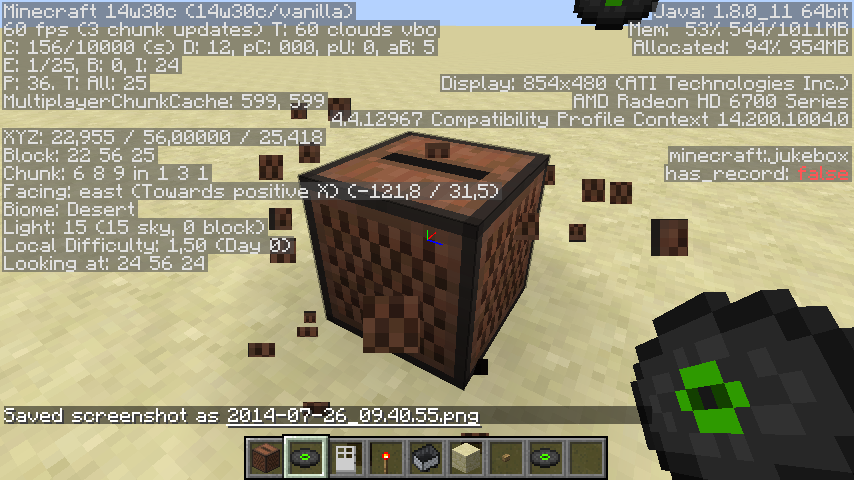 When hitting the Jukebox in creative, break particles are shown, but the jukebox respawns. The second hit finally destroys the jukebox.