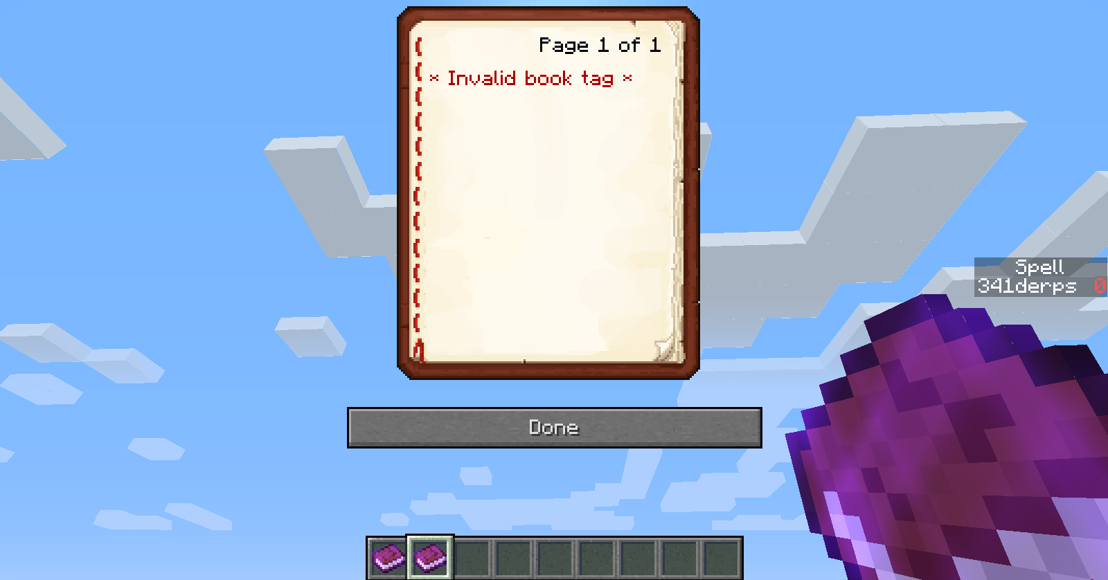 14w25b I was messing around with the pages NBT and I whipped up a spell book. 14w26b It's broken.