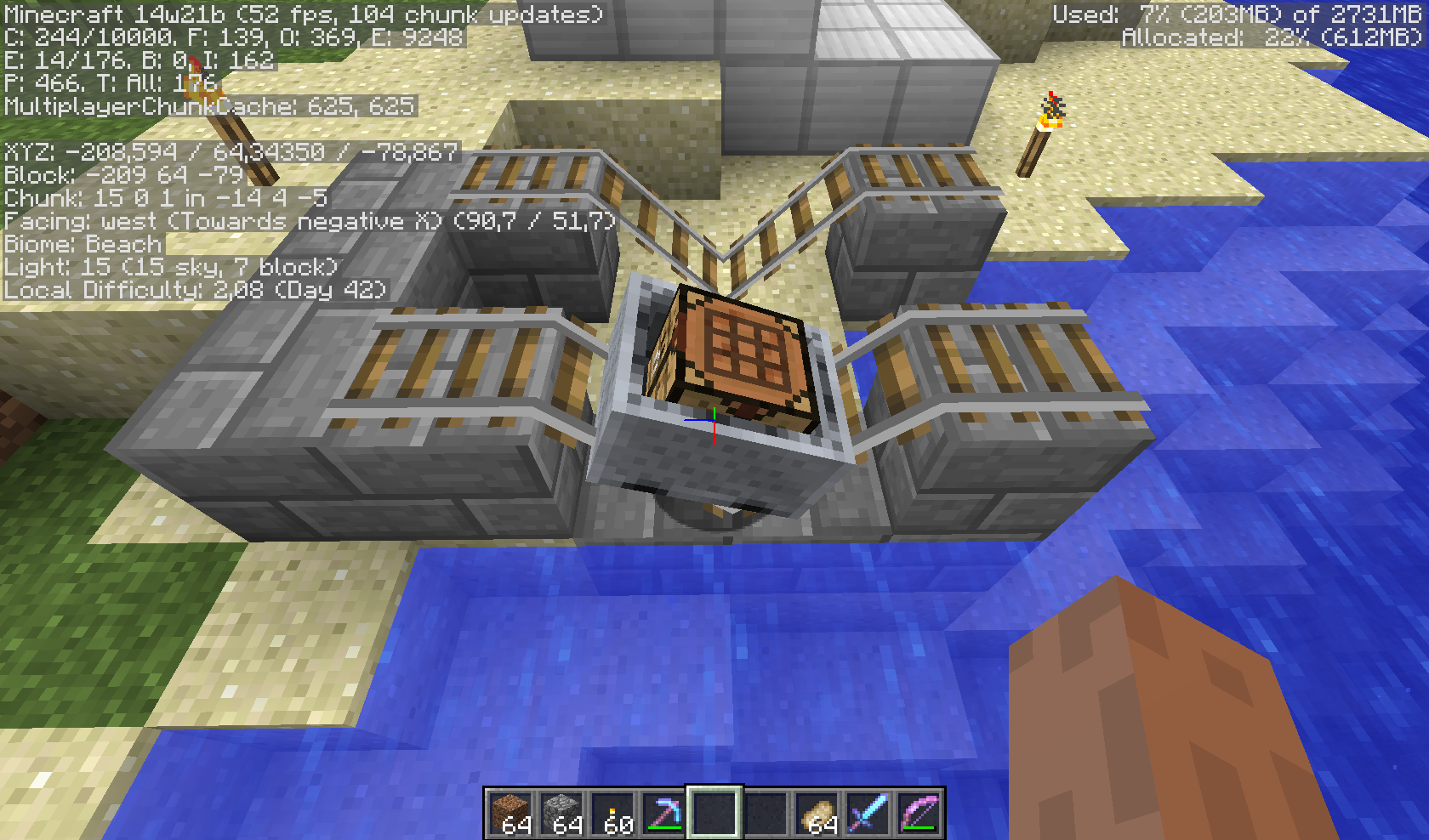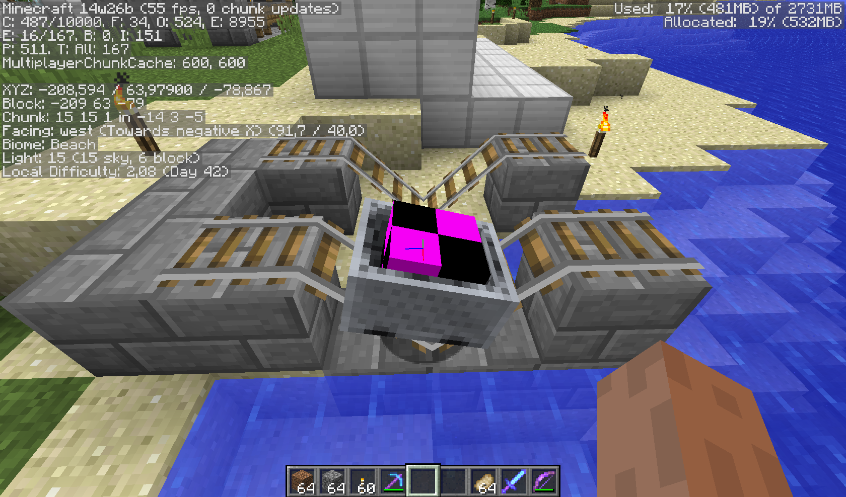 This minecart wasn't generated using in-game commands, and was generated in an old snapshot, probably that's the cause. (The minecart was generated using MCEdit in a snapshot older than 2 months) Using the command (/summon Minecart ~ ~ ~ {CustomDisplayTile:1,DisplayTile:58}) it works properly.
