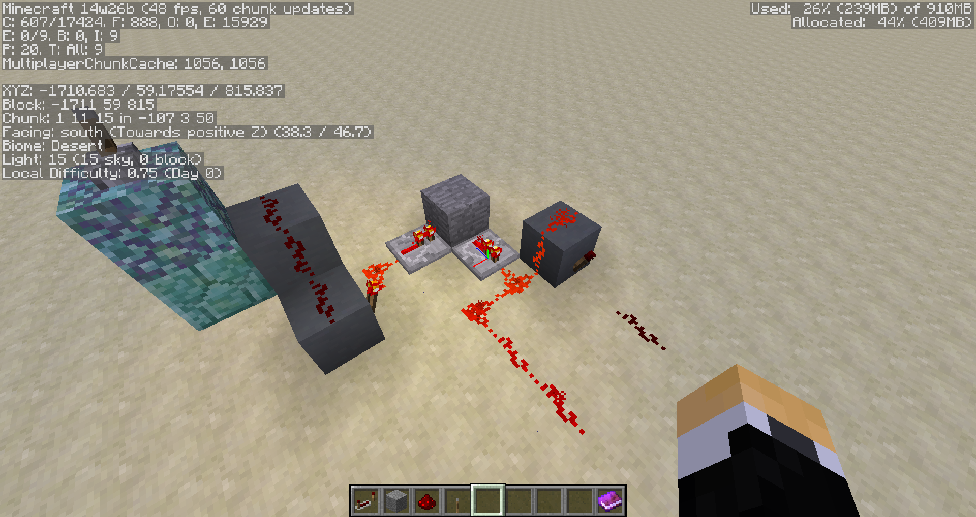 I am working on a map and update when ever I can. I was working on this when 14w26b came out and something really interesting happened. (I am basing all of this off the pictures) When the lever is turned switched on, the repeater I am pointing at in the first image will start flashing on and off. I tried to recreate it in another world but it wouldn't work so i'm assuming it might have something to do with the direction it is facing.