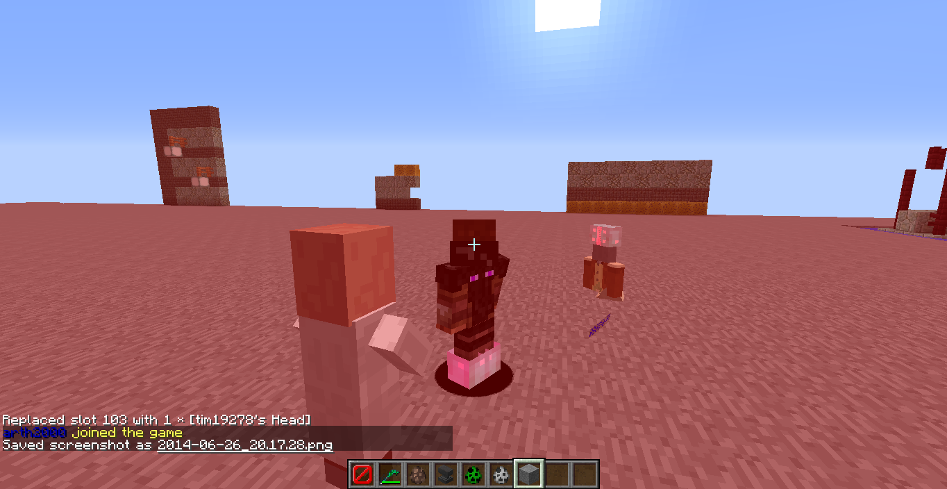 /replaceitem entity @e[r=3] slot.armor.head skull 1 3 {SkullOwner:dinnerbone}