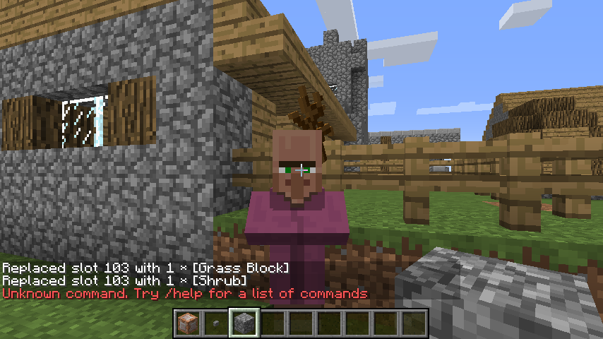 any armor or weapon (villagers cant wear armor) = invisible (still succesfully runs command and says it placed the helmet but it actually didnt)