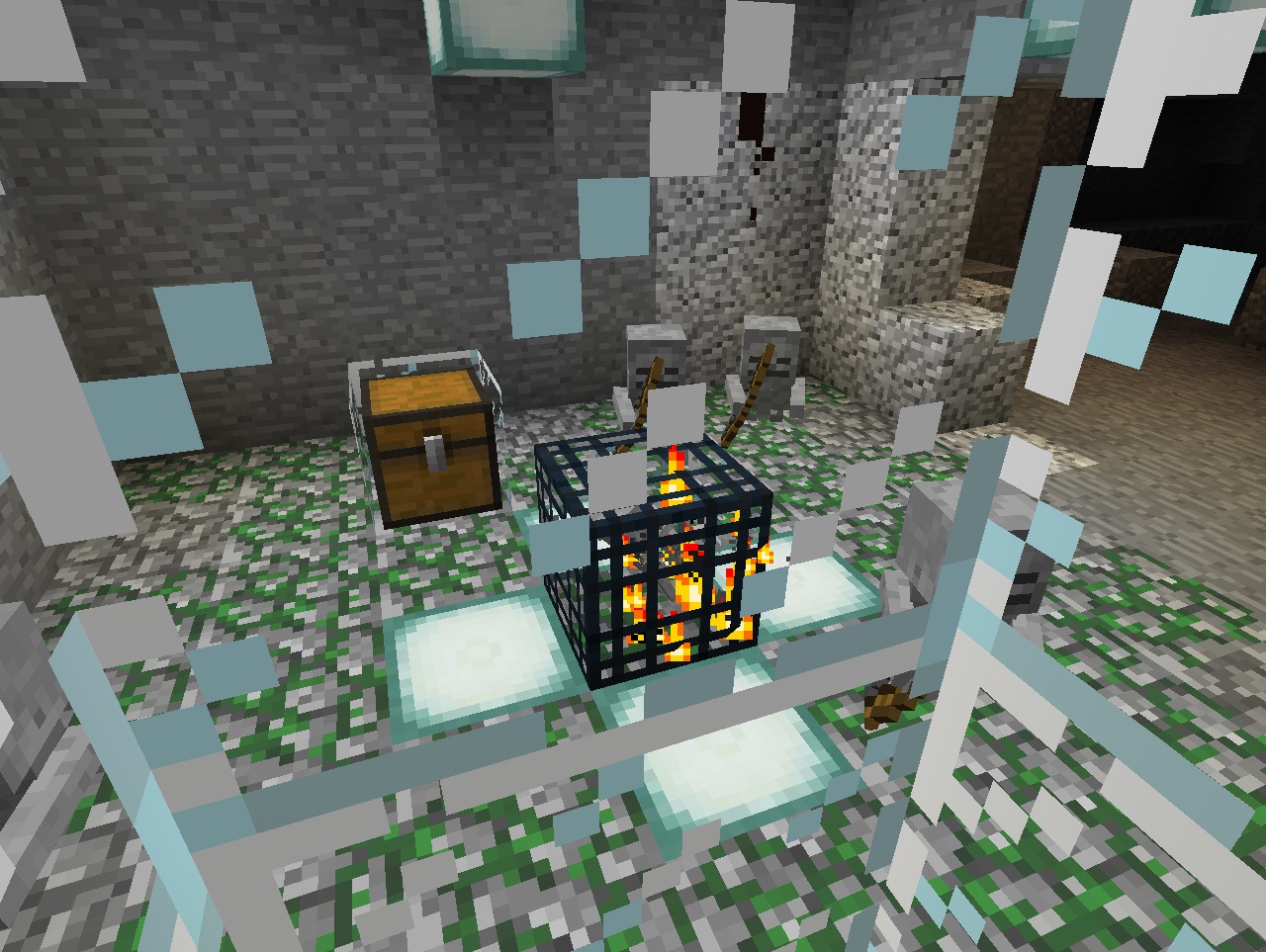 I found one of those skeleton spawning treasure rooms and noticed they were spawning in the wall. I got 3 pics of it with the walls replaced with glass to help see. It might be a little dark (needed to spawn them), sorry. You can make one out in the background in red. And another with one in the floor with the spawner.