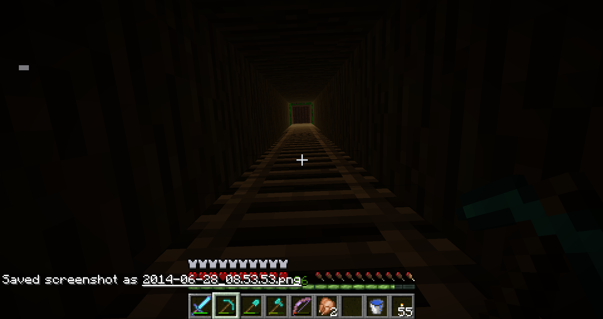 In image 08.54.01, you can that the item in my fifth active spot (a Bow) has phased out; in image 08.53.54, you can the Bow has returned but there is now a white "command prompt" artifact in the upper left hand corner.