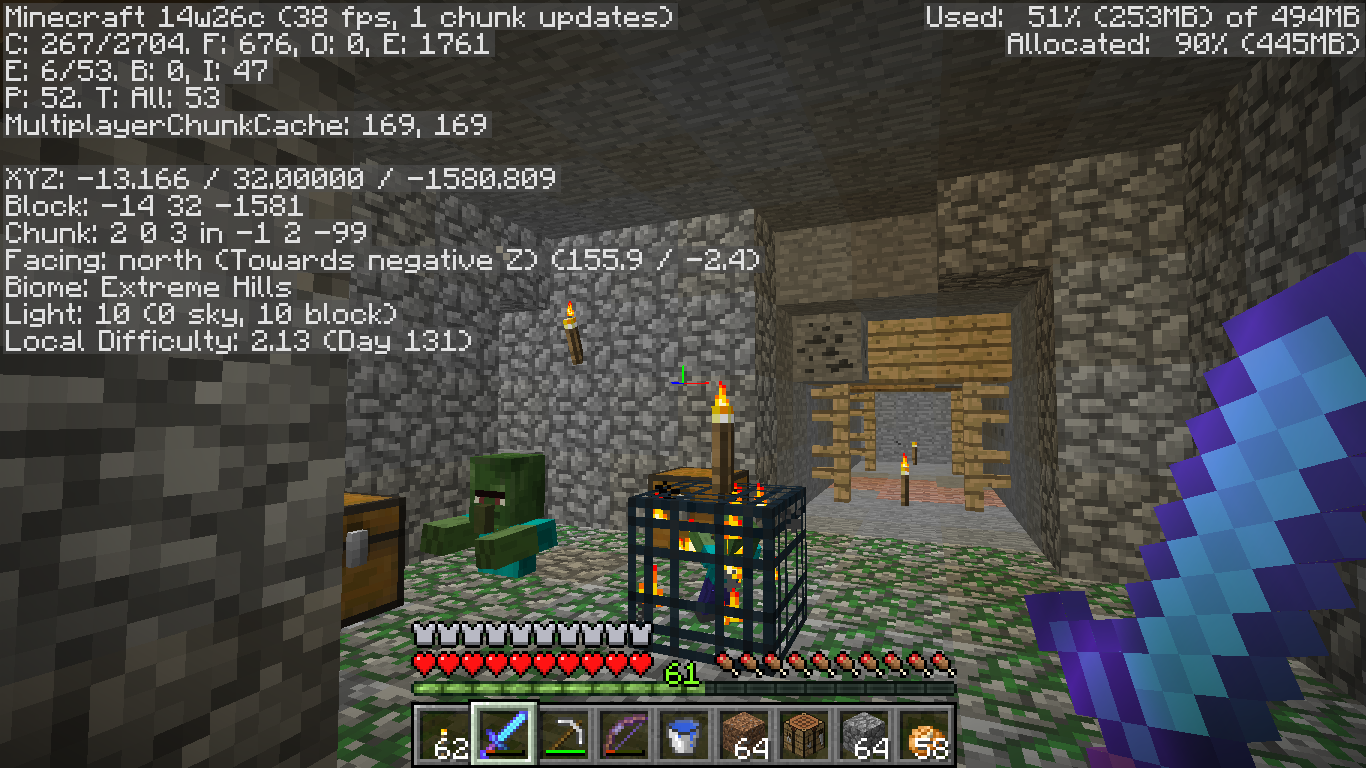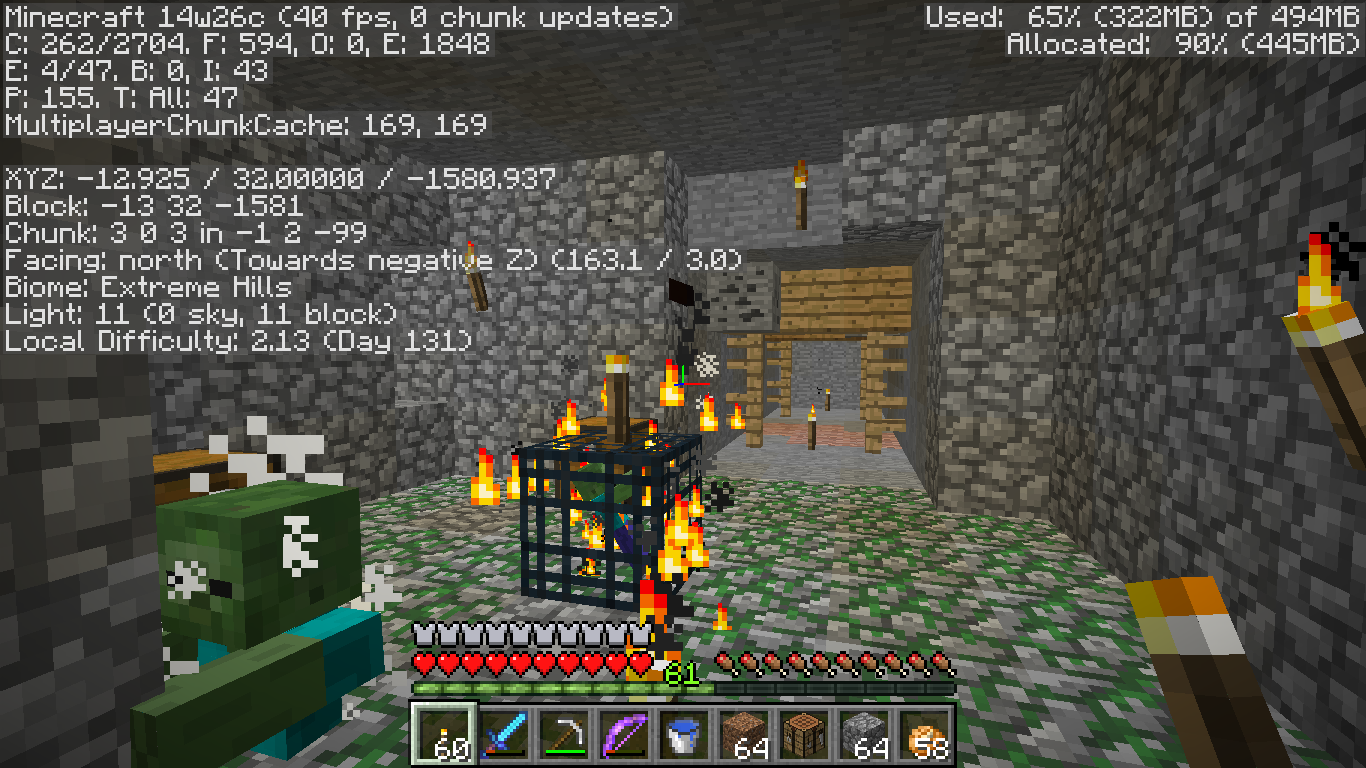 As noted in the title, dungeons spawn mobs regardless of how well lit the room is. This was first noticed in 14w26c, but could have occurred in prior snapshots, but not before 14w21b. This was discovered after encountering two previously explored dungeons. The dungeons held a light level of 10-12. When the mobs spawned, roughly 75% of the spawns were half in blocks, if not fully, leading some to suffocate.