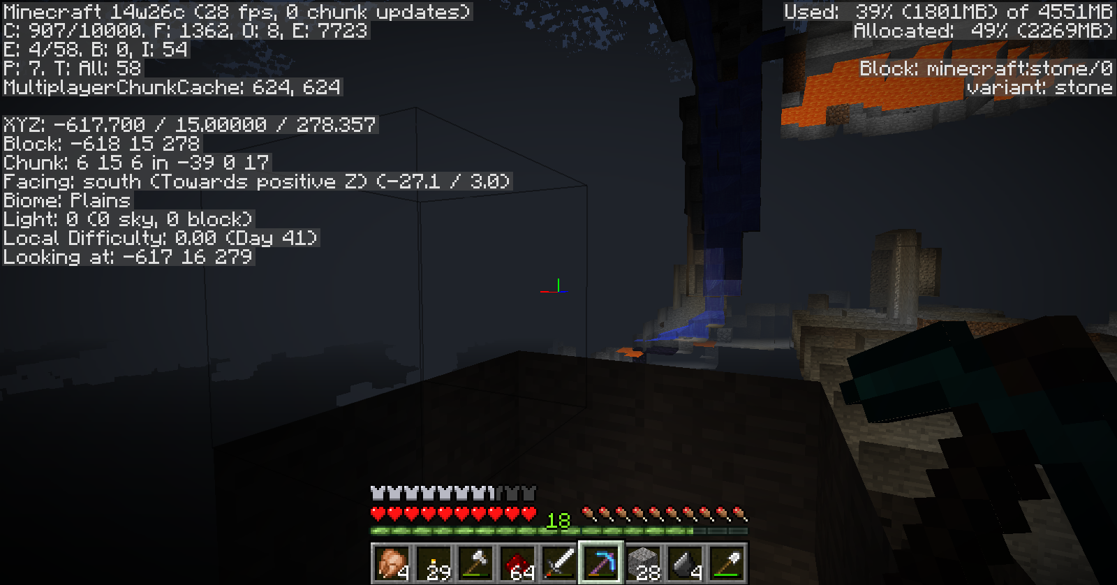 I was mining coal ore and diamond ore then all blocks (besides grass and cave systems) above level 14 disappeared.
