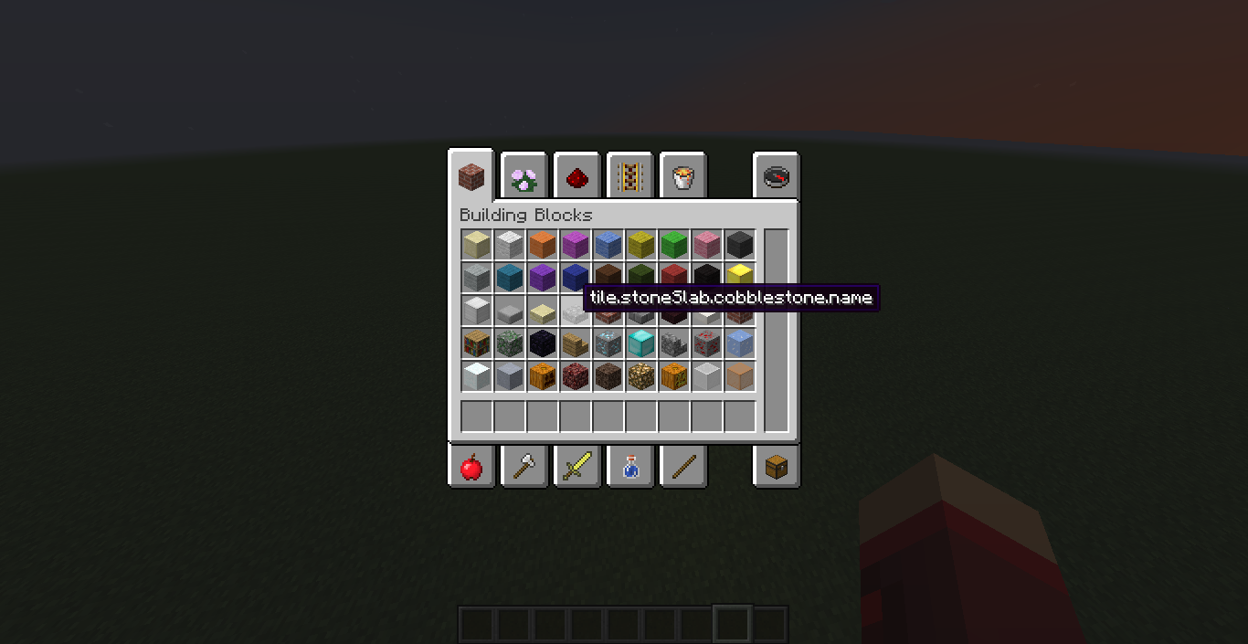 I was fooling around the inventory and saw that the many of the slabs (dark oak slab, cobblestone slab, stone brick slab, and nether brick slab) have the default name.
