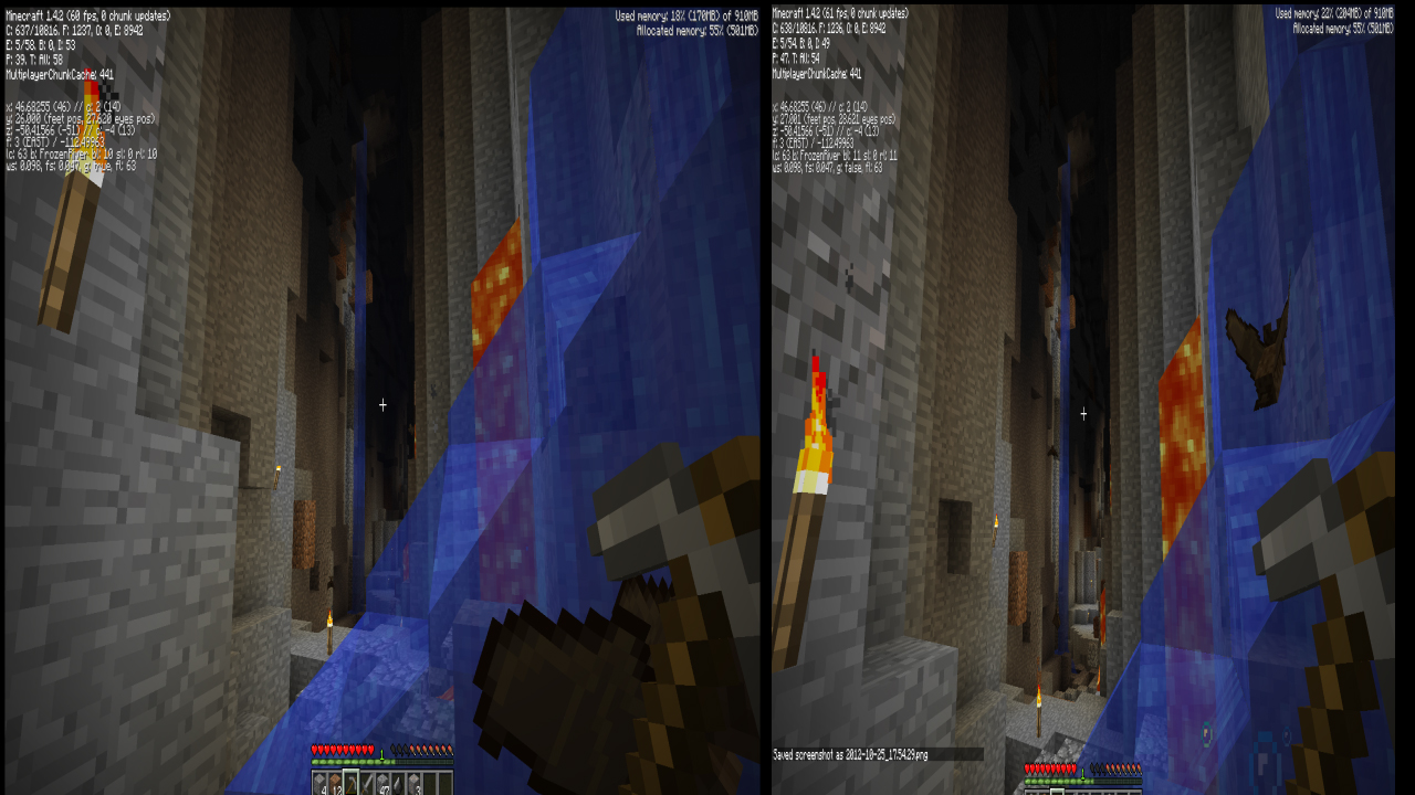 In the first photo shown on the left, the lighting is darker. On the second photo shown on the right, I jumped and the lighting became much lighter. You can't really tell that well in the screenshot, but in-game the lighting was much more different.