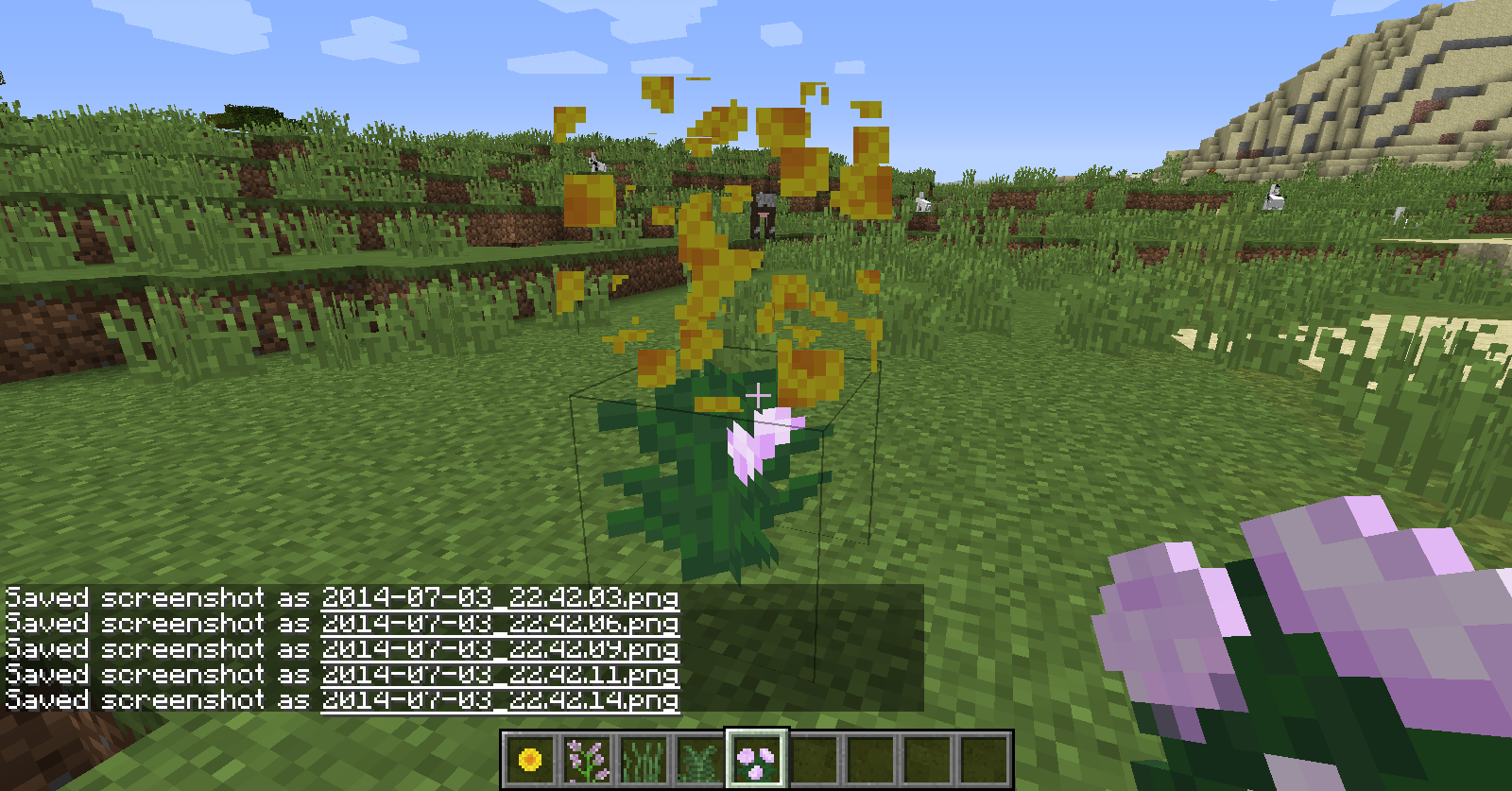When breaking rose bushes, lilacs, tall grass, or large ferns, the animation is that of either a sunflower or peony. Sunflowers sometimes have the breaking animation of a peony.