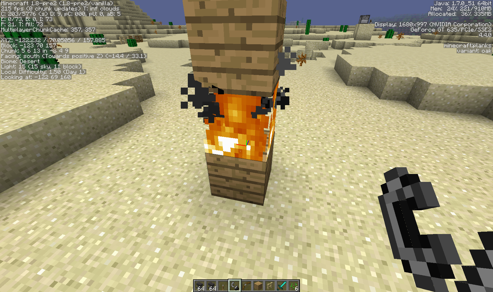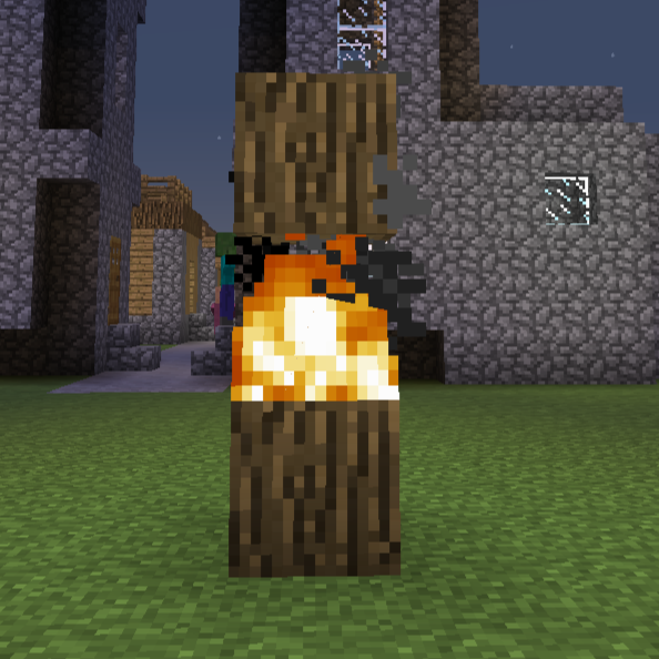 When a fire block has a flammable block above and below it, the fire renders as though there is no flammable block below it.