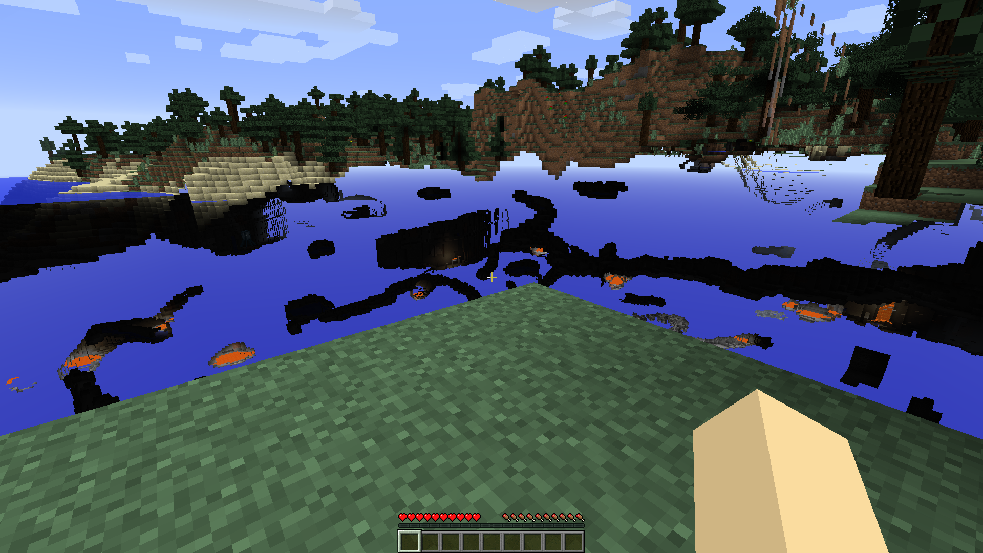 The chunks are see-through when you first create a world. It goes away on second load.