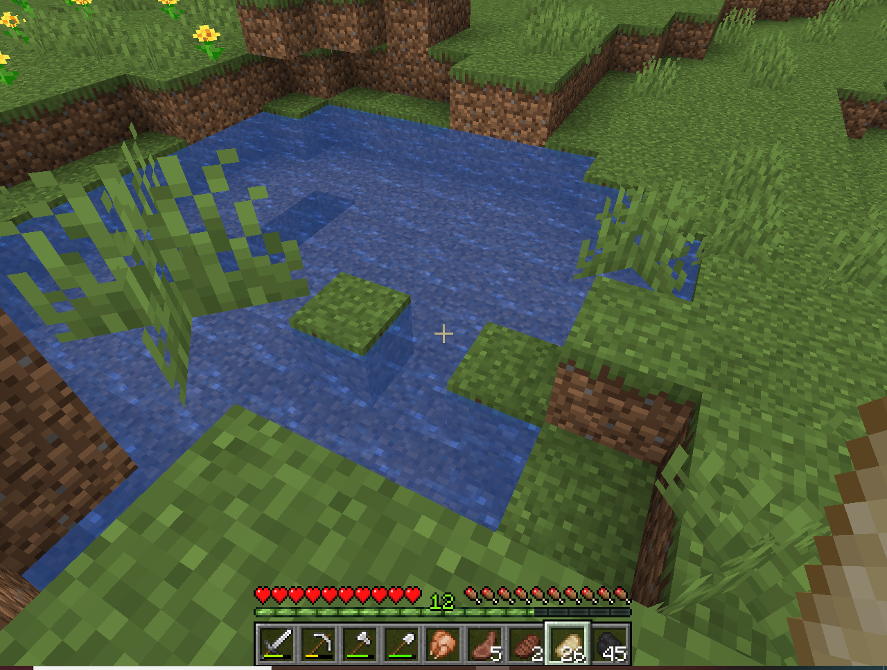 I added specific debugging messages to see when and where the game was generating grass and lakes, in a specific area I knew would have a lake with floating stuff. Results looked like this: