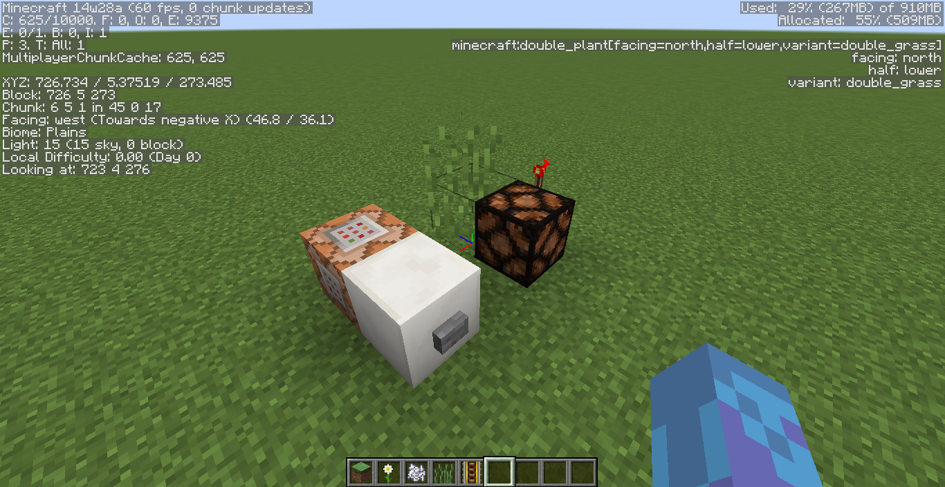 EDIT: Same applies for pistons (without the upper part snapping to a side of course), tall grass, and probably moat/all double-block as well. I also associate it with a crash, for which I have created a report: https://bugs.mojang.com/browse/MC-61183