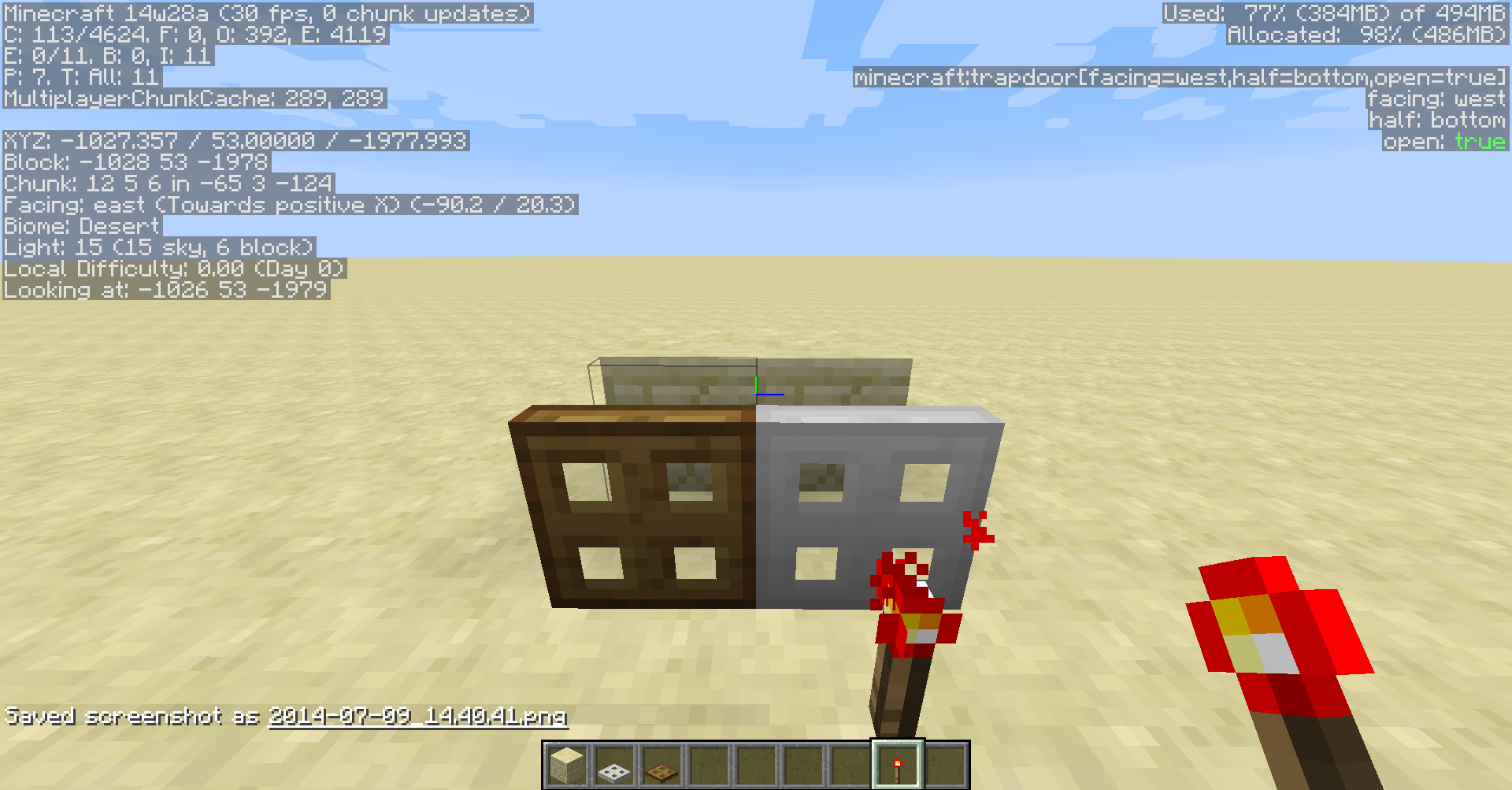 In the screenshots you can see the bug in this order (Or look at the "F3" mode block info):