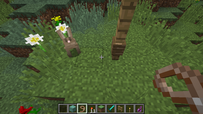 If you exit the world and come back in, the bunnie is still connected to the post, but the lead is invisible. you can see the lead on the post, but the rest of the rope is invisible.