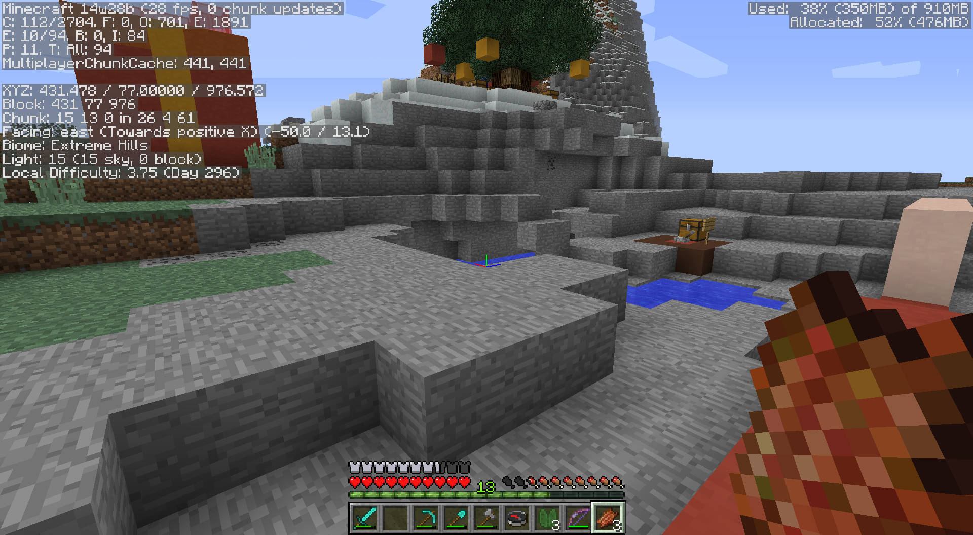 Also, a player that stands outside of these chunks is not affected by the framerate drop or the CPU load of a player that is inside the chunk. (i.e. I can stand right next to the affected chunk, having normal framerate and CPU load, and watch another player inside the chunk who moves around one inch every 3 seconds.). Mobs behave normal in these chunks, they walk with their regular speed, and track and attack players.