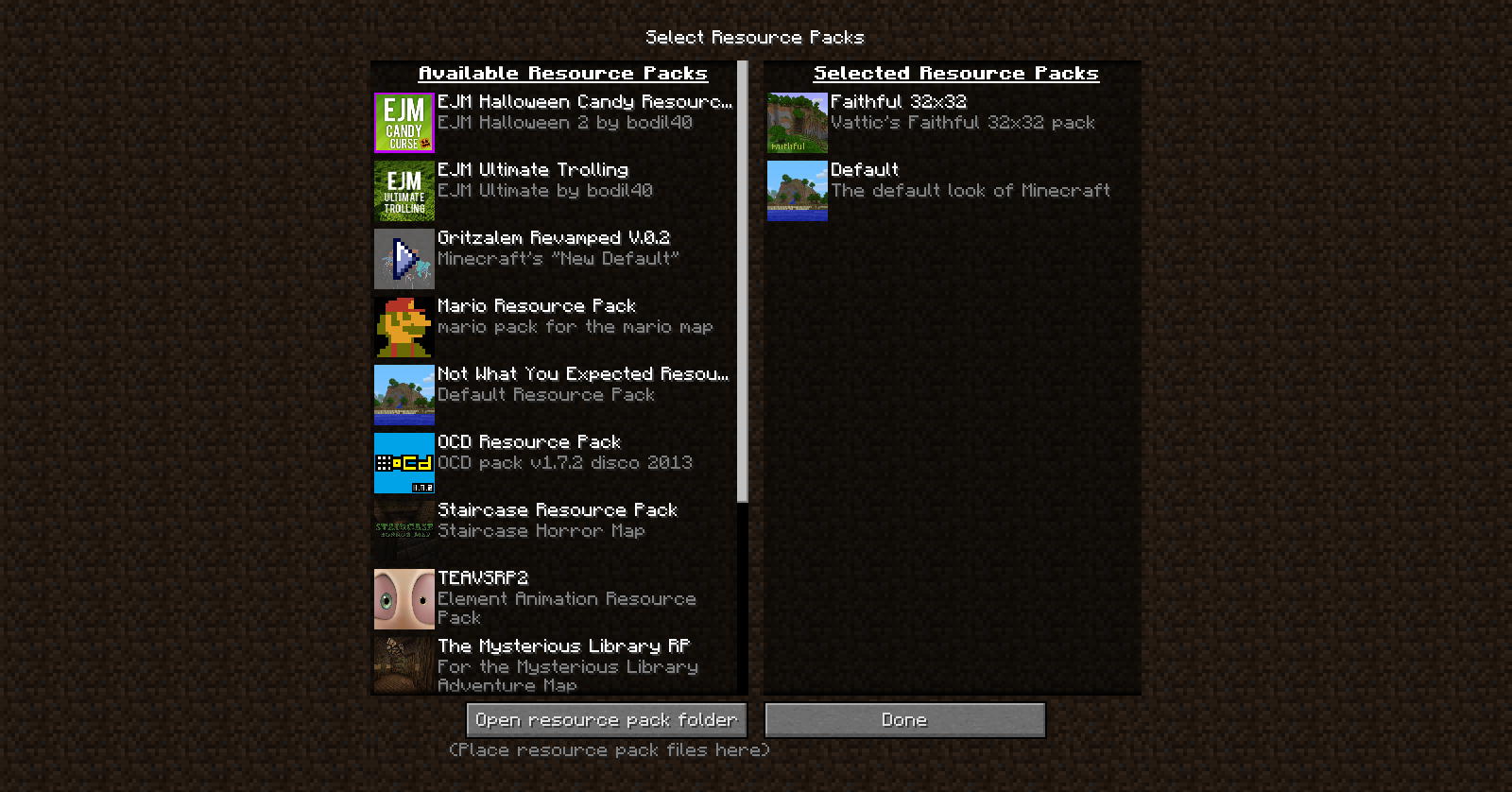 When changing the selected Resource Packs or adding, when you click the Done Button, the Resource Packs unselect like nothing happened.