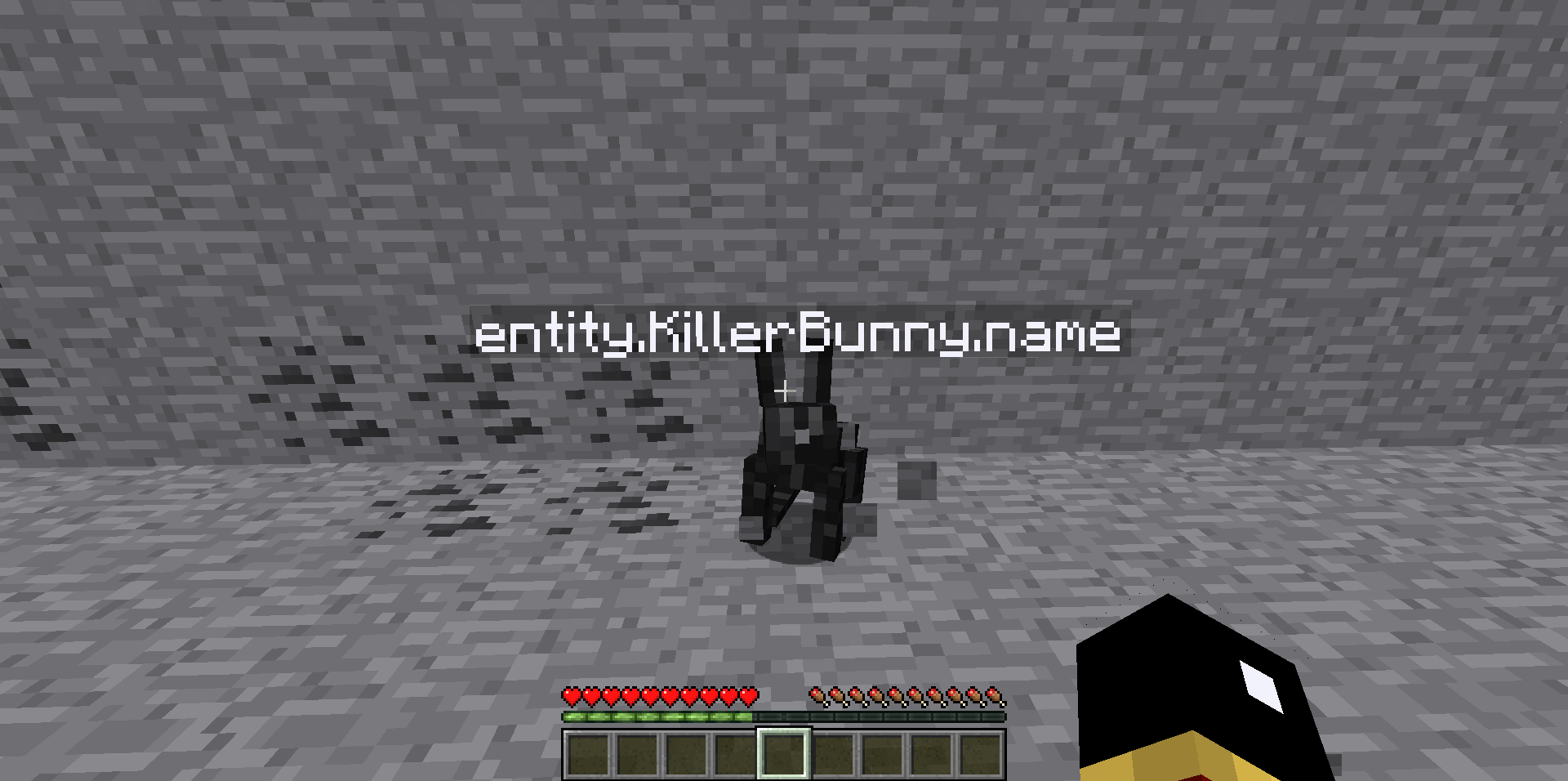 I was playing around on a random world, when I found a rabbit with the name entity.KillerBunny.name. It was naturally spawned, and behaved like a regular rabbit, except that when it was at specific coordinates and had a stone block behind it, it would leap towards me as if it were trying to attack me, but it would do no damage. When I started to experiment with this behavior, it stopped happening. When I tried spawning killer rabbits with commands, they acted normally. I tried to find more naturally spawned killer rabbits to see if the same thing happened, but I couldn't.