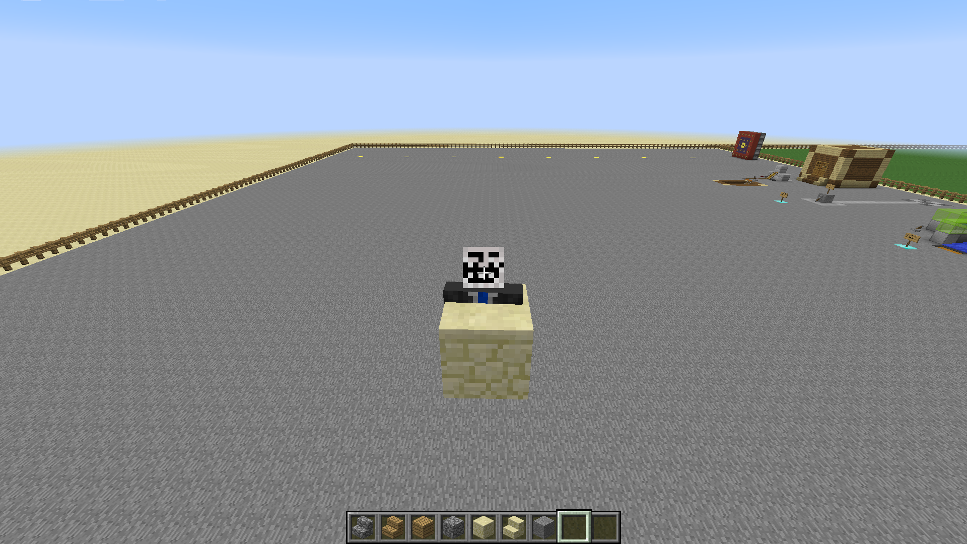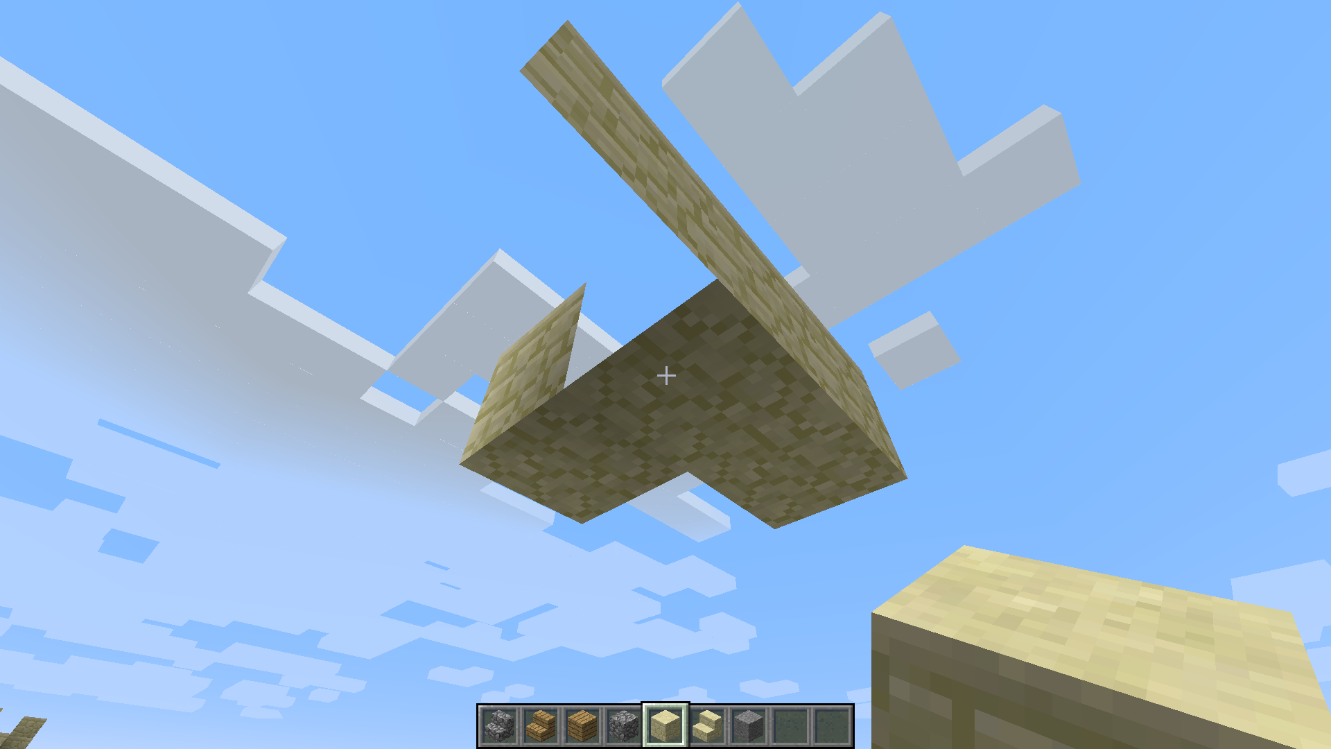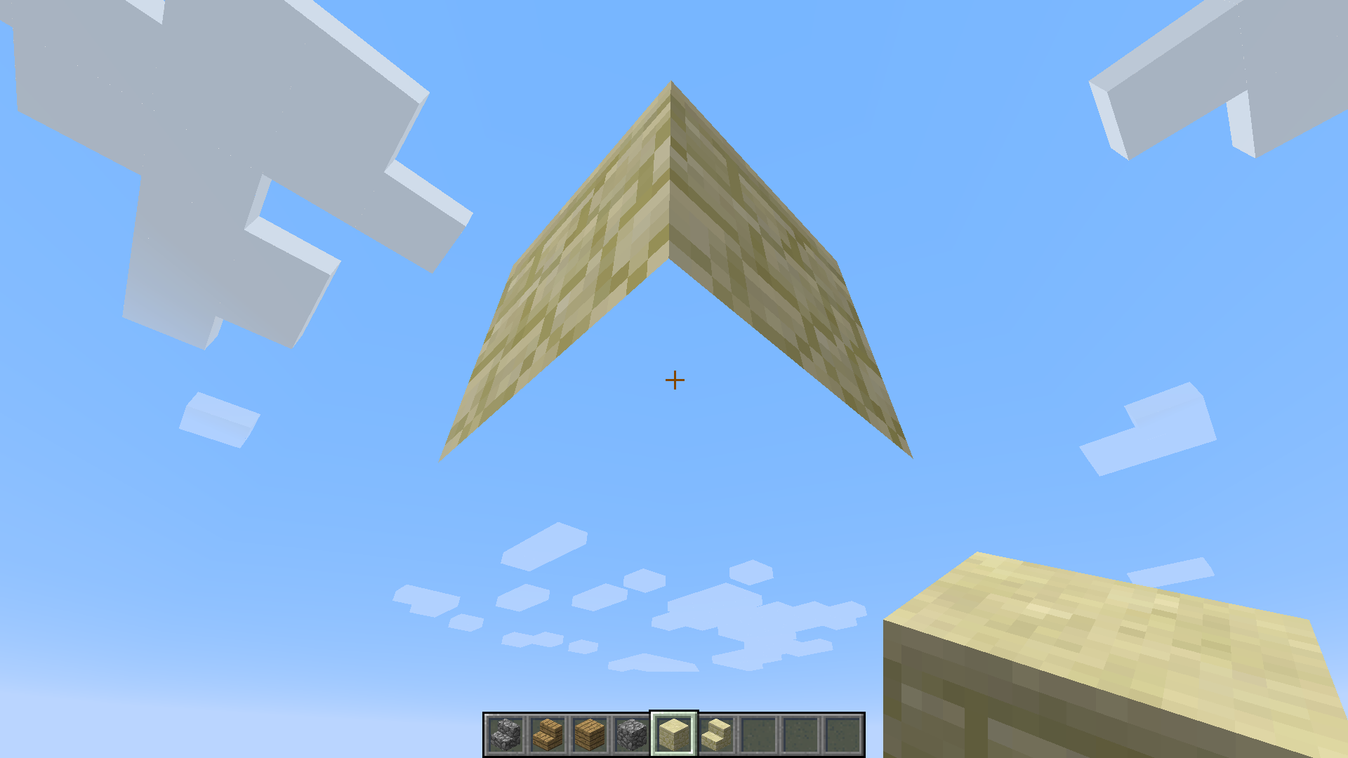 this sandstone block appeared while i was working to show you another bug, and its a block that doesn't want to disappear. A crazy thing happened while i was placing another blocks around it: they became just like it!