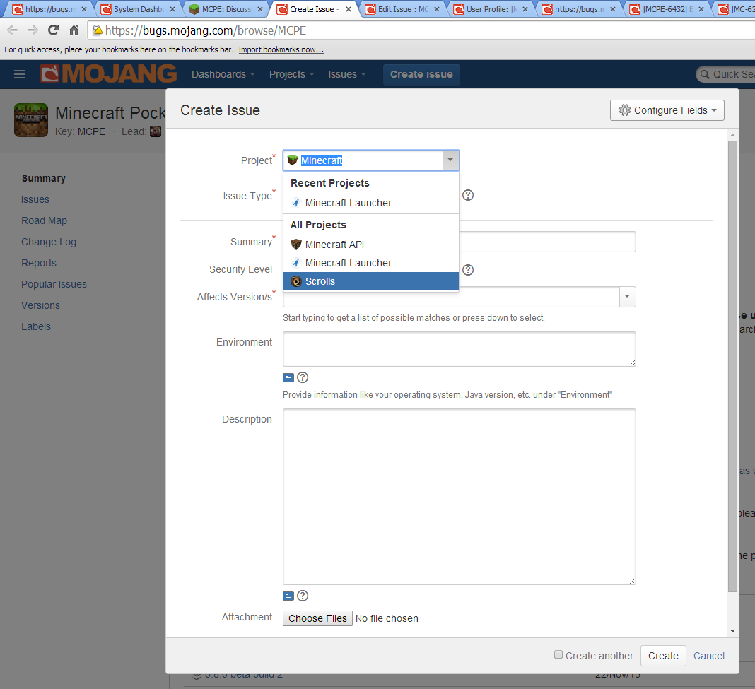 I know this isn't the spot for it. But it won't let me create a bug report FOR MCPE, it won't give me the option!! GAHH!!!!!!