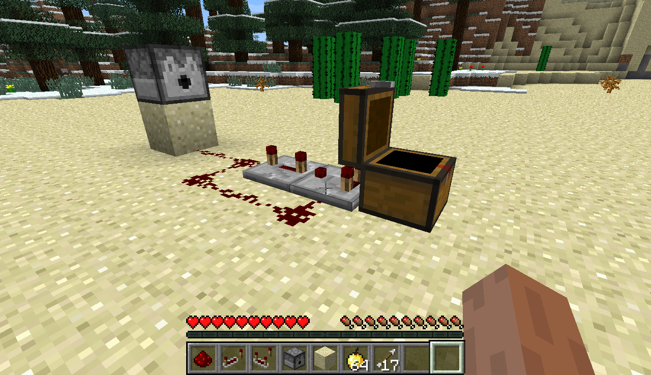 I built the setup in the attachment below, a trapped chest hooked up to a comparator -> repeater -> dispenser -> redstone dust loop. This causes an arrow to be fired every time it loops around. However, when the arrows push me back, the GUI for the chest disappears and it does not give out a signal, but visually the chest remains in the open state.