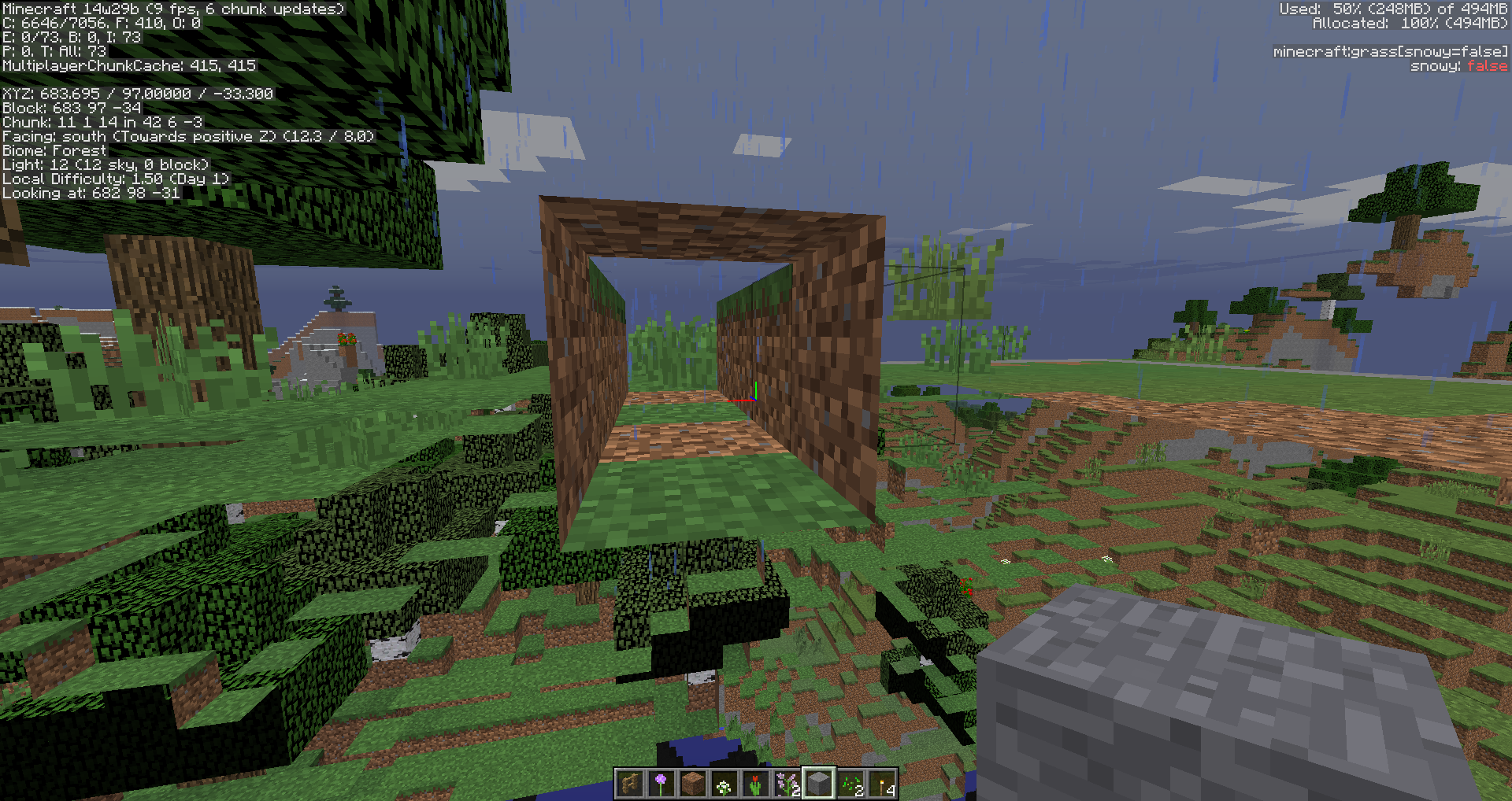 This is a tunnel carved straight through a hill, and I am currently standing facing the hill inside a dirt block (from my perspective).