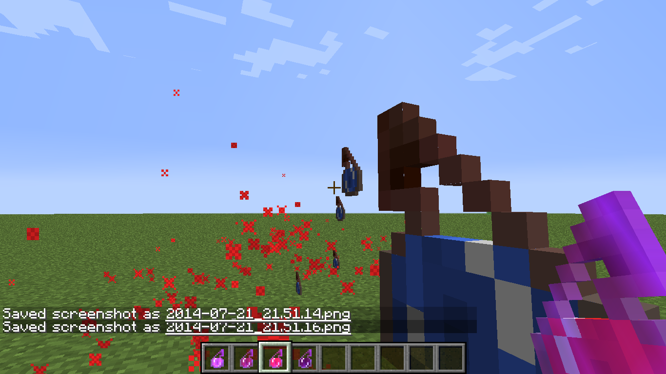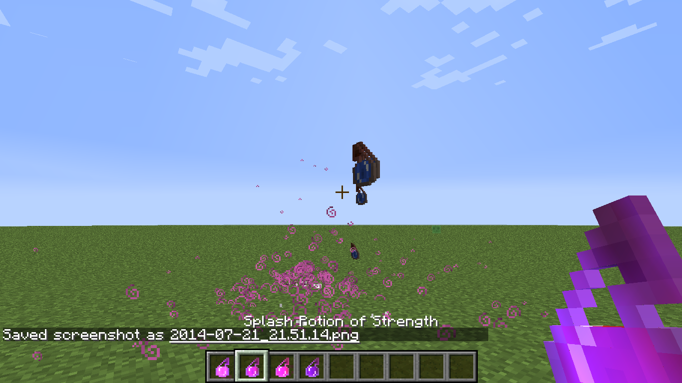 i was just messing around in creative mode when I noticed that whenever I used a splash potion it didn't show the right texture when thrown, it was always a dark blue color instead of the actual color of the potion. Not a major issue, but just letting you know 🙂