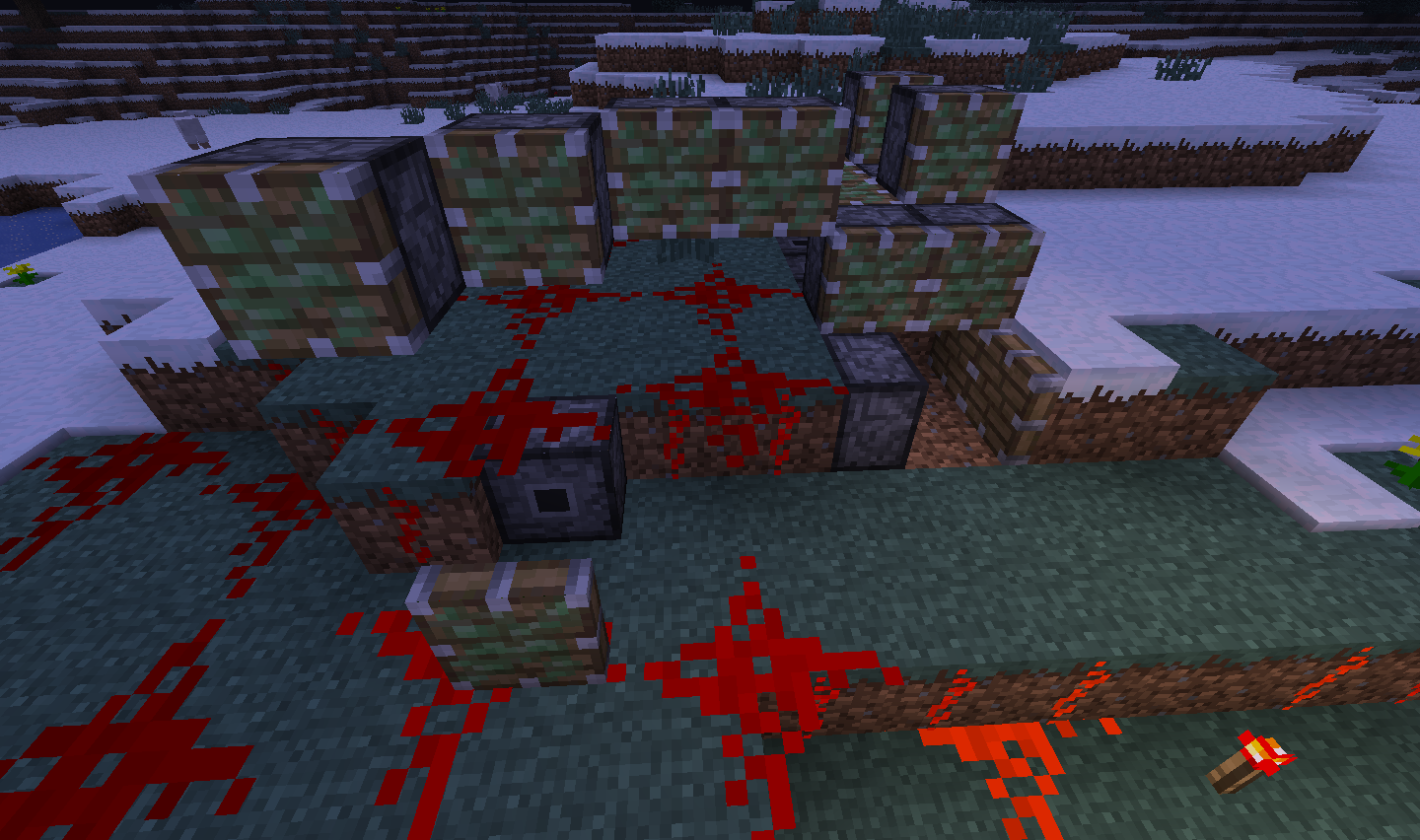 When near the borderlands redstone and pistons don't display correctly. Redstone is larger than normal if there are pieces of redstone near it or is invisible if by itself such as the redstone under the block of sand in the screenshot.