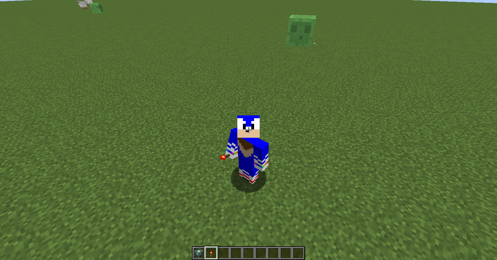 While holding a block the block is abnormally huge and while holding an item, the item is inside the arm. With the first picture I am holding a command block and in the second picture I am holding a redstone torch.