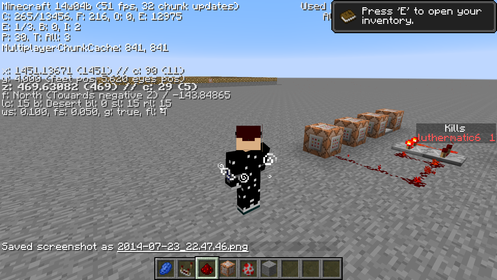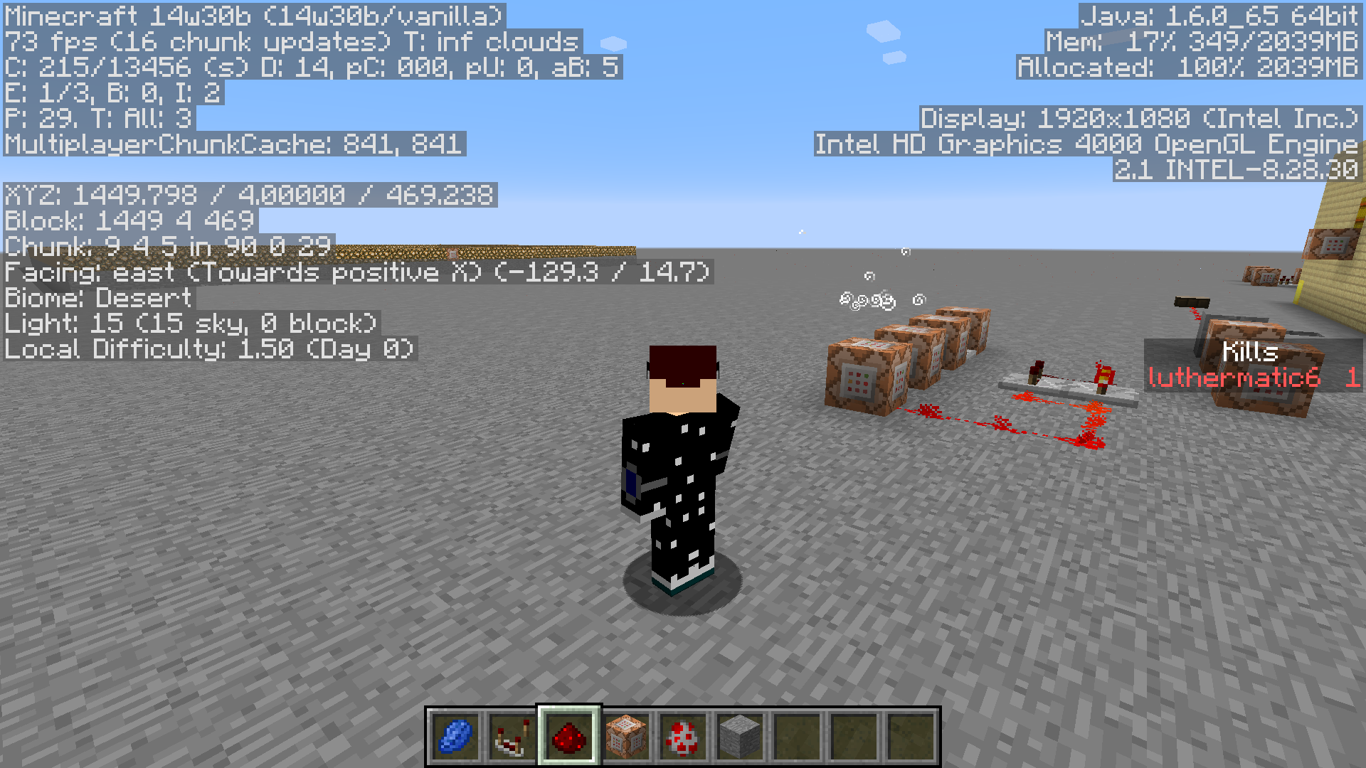 In the current version of Minecraft, 14w30b, I set the command in a command block to: /particle spell ~ ~1 ~ 0 0 0 0.01 8 force @a[team=RED]. The game I have made has a team called "RED" and players' nameplates show up said color (sidebar of picture). This command was intended to create particles at all players on red team, but instead, the particles appeared on the command block itself. To test this, i rolled back the map to 14w04b, edited the command so that it no longer contained the "force" argument which was added in 14w29a, and run it. The command was successful as i had intended (It also correctly stopped working when i changed teams). I believe this bug might have something to do with the addition of the "force" argument. All i really want to know is whether this is intended to not work or if it is, in fact, a bug. Thank you for taking your time in reading this. Great game, devs! Keep up the good work!