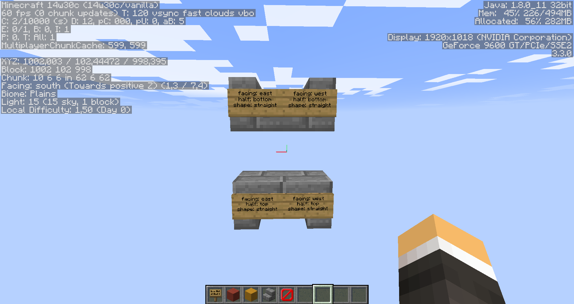 Aim at the block behind the stairs and leftclick to destroy it. Look at the screenshot. Left side (facing east) is not working.