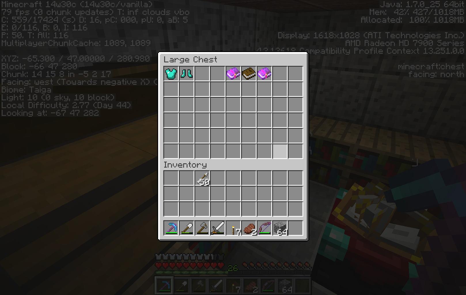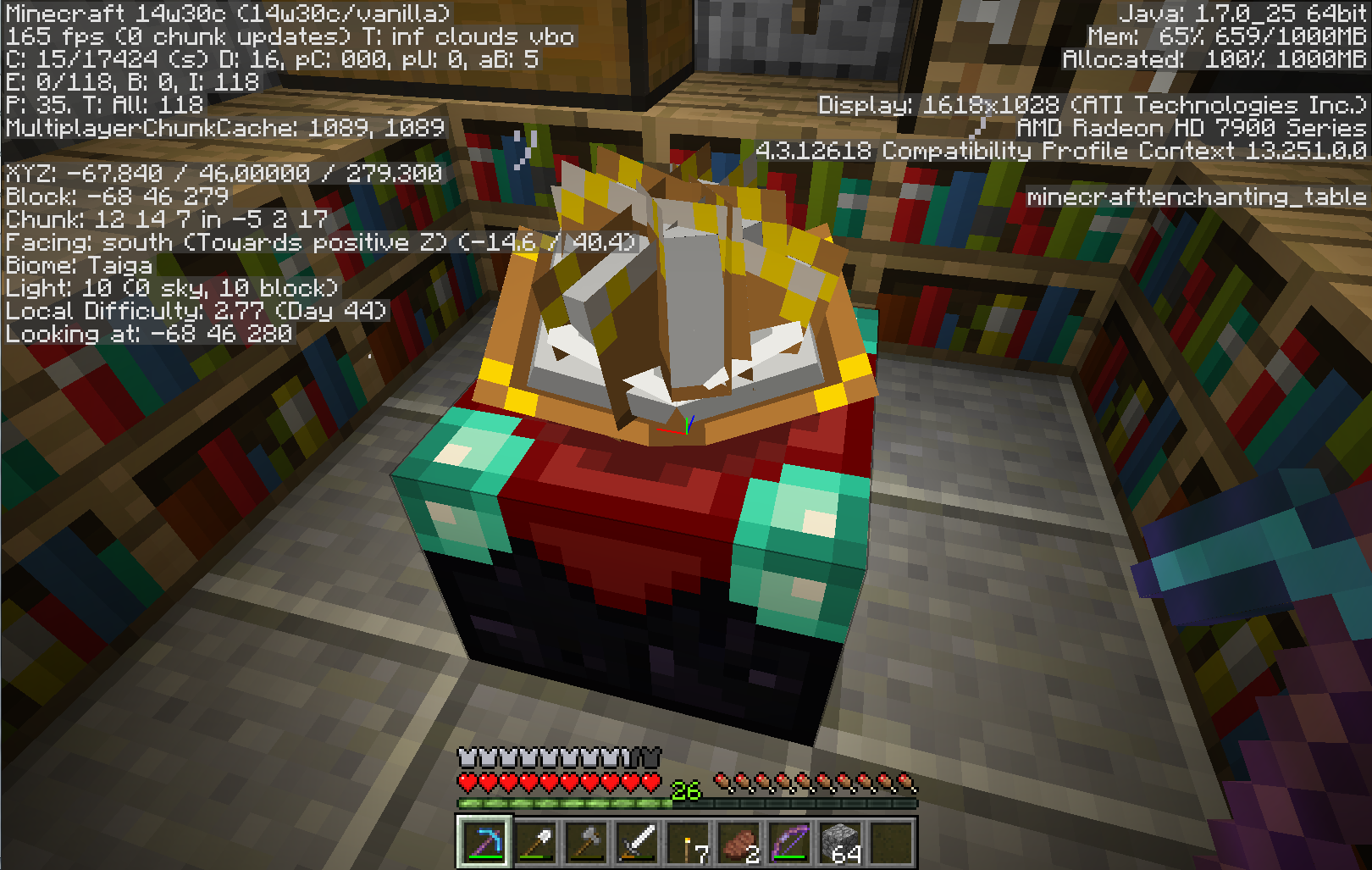 having either a chest or enchanting table and returning to it after it has been unloaded becouse you were tofar away makes the animated model freakout in the position it was in when it was unloaded. chests when opened will have both a closed and open lid en enchanting tables will have 1 or more closed books vibrating above it aswell as the normal opened book.