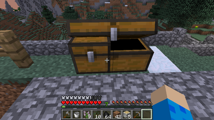 Although when opened, double chests have the normal amount of spaces, whichever side was placed first keeps the shape of a single chest. Although a large-chest sized lid opens when opening the chest, the side placed first appears just like a single chest, including having its own latch in addition to the center latch.