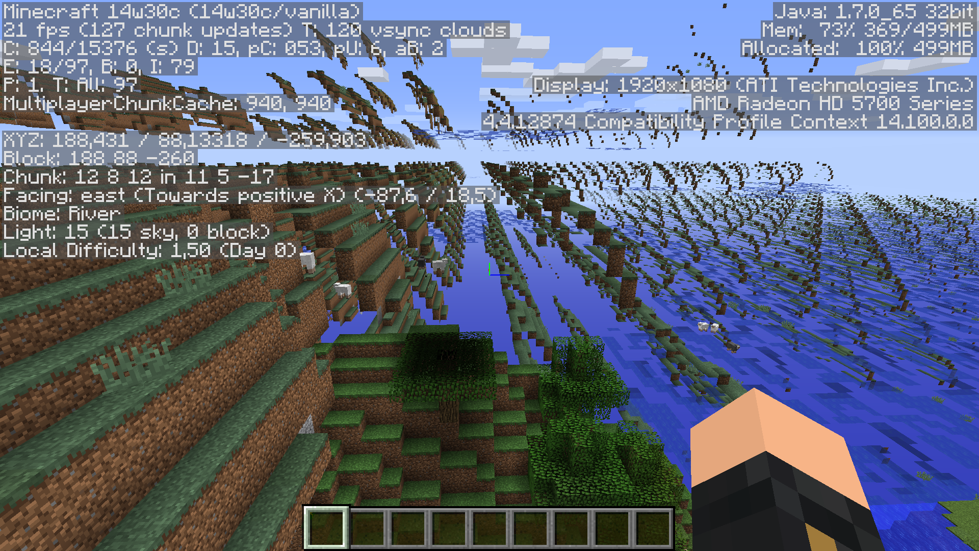 After changing render distance (8 originally switched to 16) some areas are just visually repeating the same chunk and it just changes all the time. You can move threw it as there was nothing. Leaving the map and coming in again don't change anything but closing the game and relaunch it clears the bug.