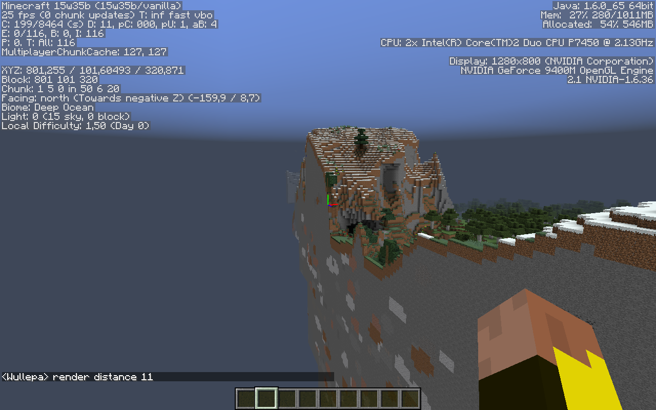 In the first screenshot you can see that the game dropped me to the bottom of the world.