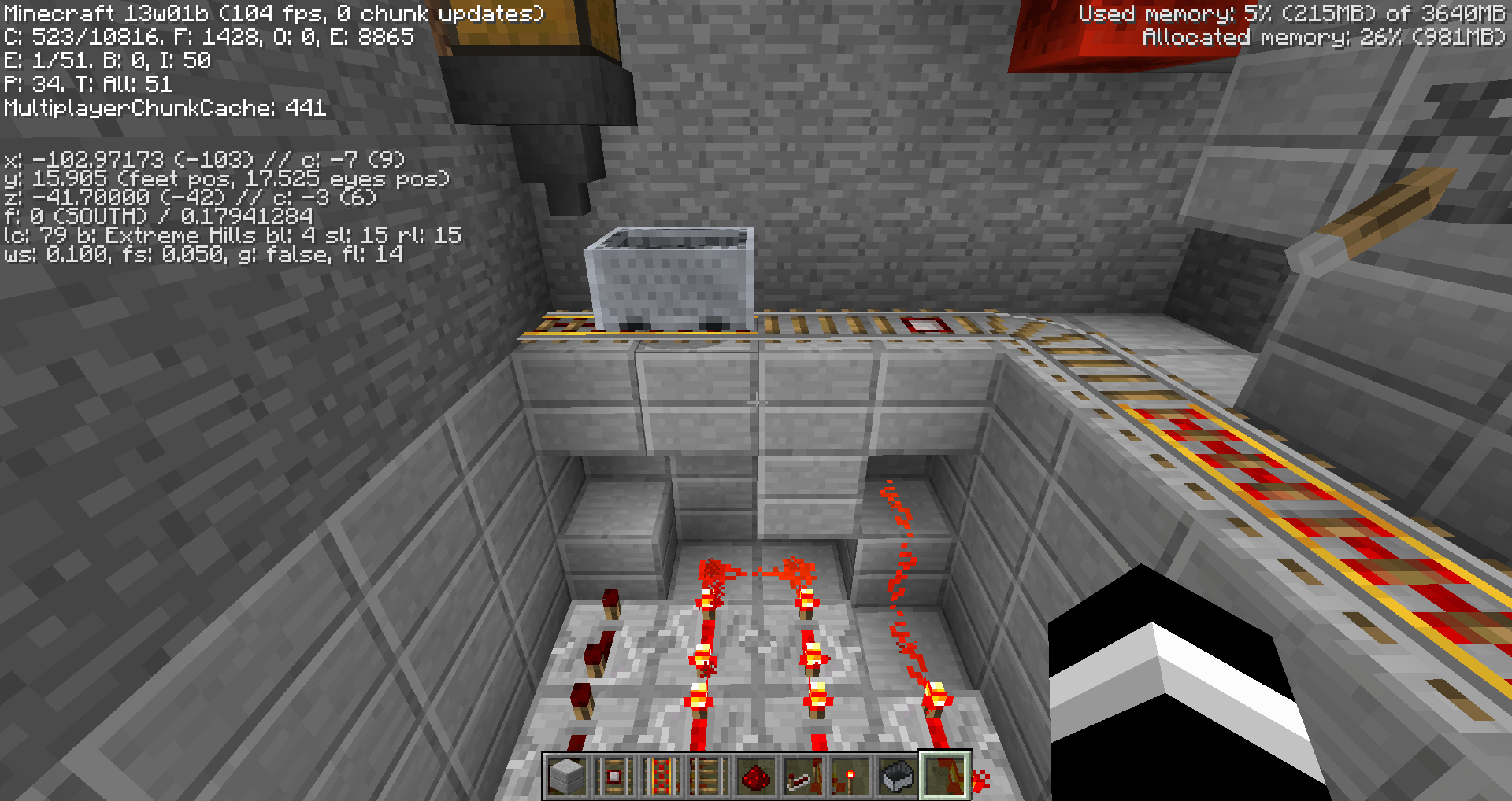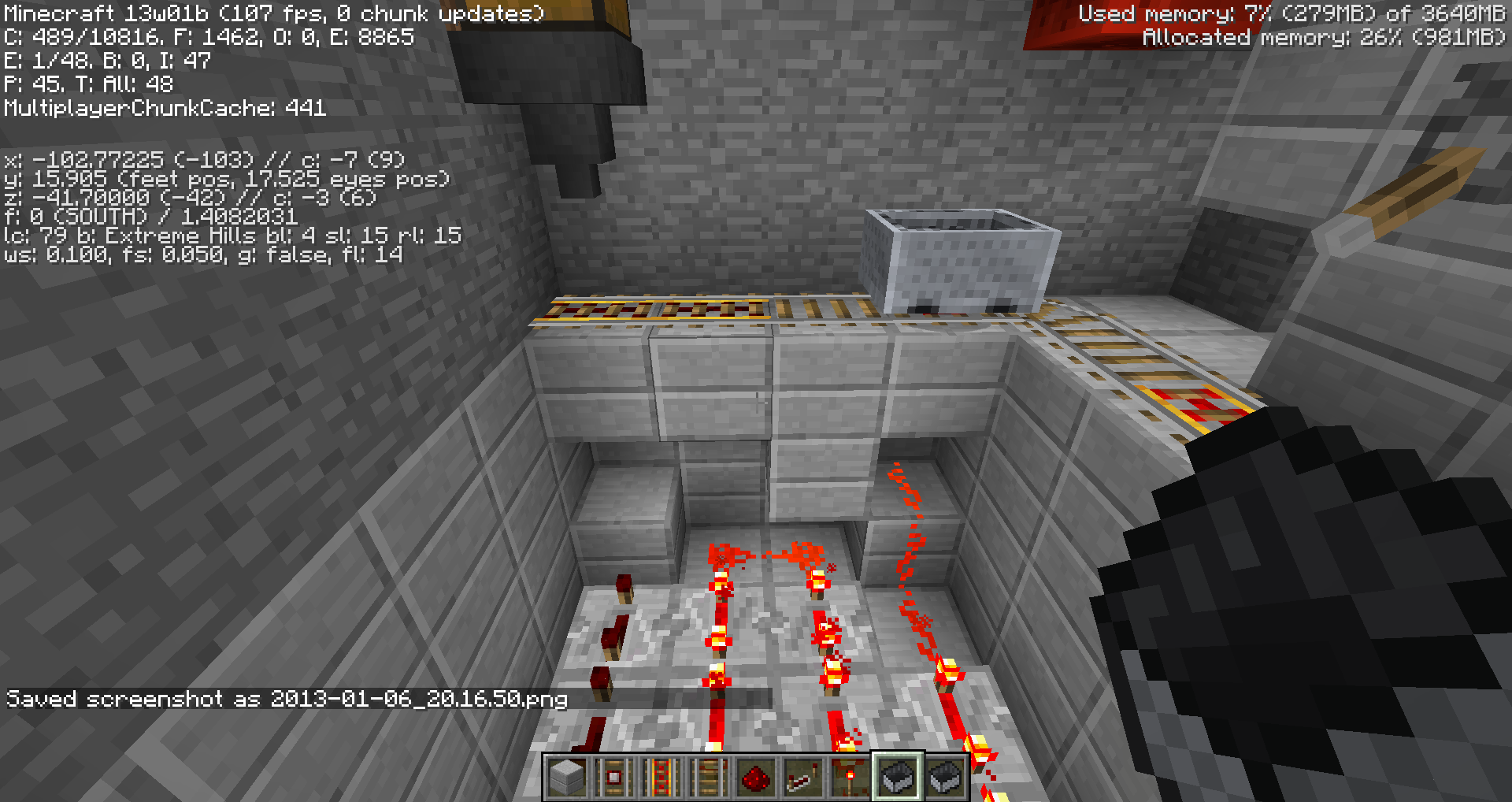 As the same bug has been in bugs MC-5788 and MC-6105, detector rails output redstone power to blocks without a minecart on top of it. Bug MC-5788 was scratched out as a duplicate of MC-6105, but this bug has arisen once again. I attempted to make a system that auto-loads and auto-unloads items with the new hoppers, but as the pictures show, I am unable to. I confirmed that it was in fact the detector rail by removing it and all other blocks, and the problem persisted.