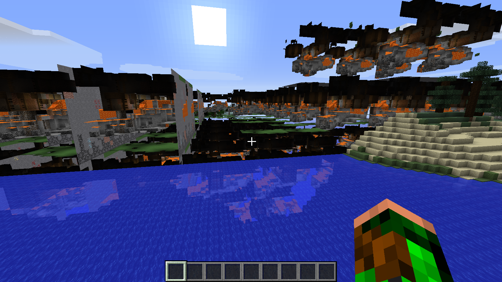 When you change the render distance to a higher setting, the game keeps running without lag but the chunks glitch and change each time you move. This only happens to me on version 14w31a and it happens each time I change the render distance, if you put the render distance back to its initial setting the glitch disappears and the game runs normally.