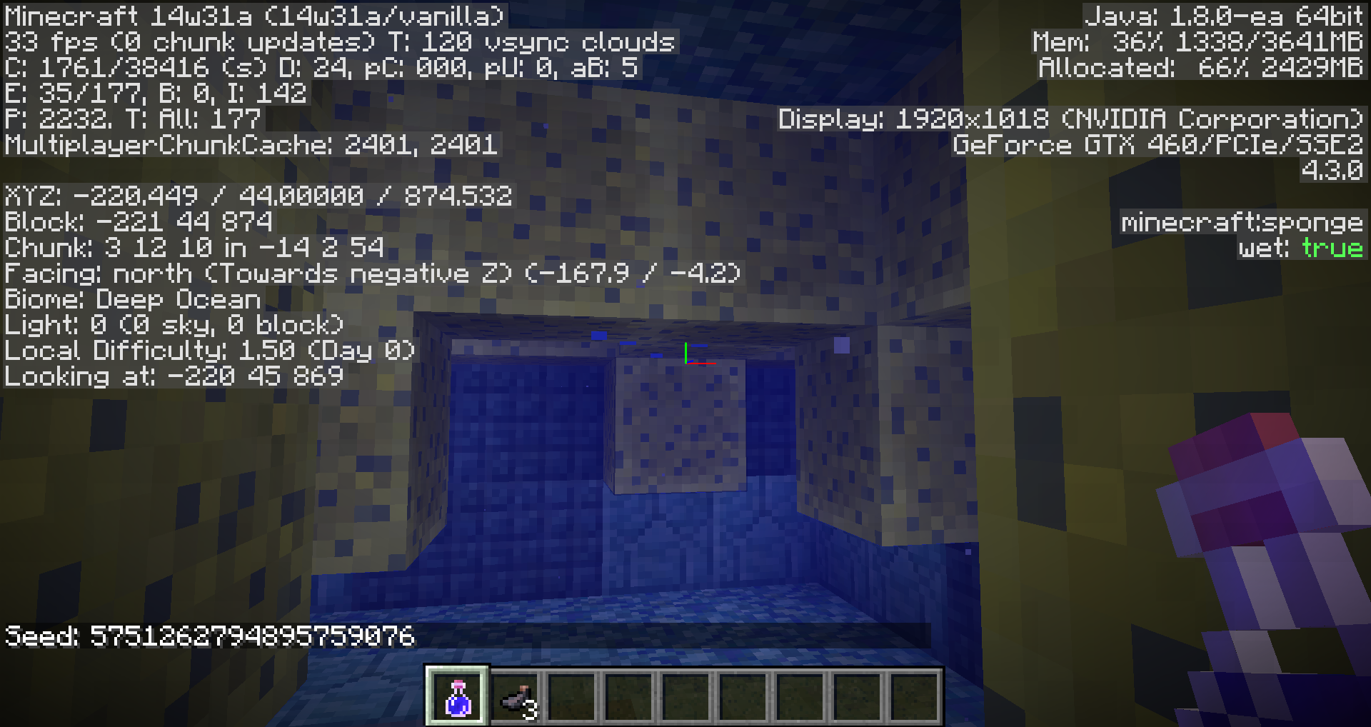Wet, underwater sponges still show the drip animation (although the particles swiftly disappear after descending enough).