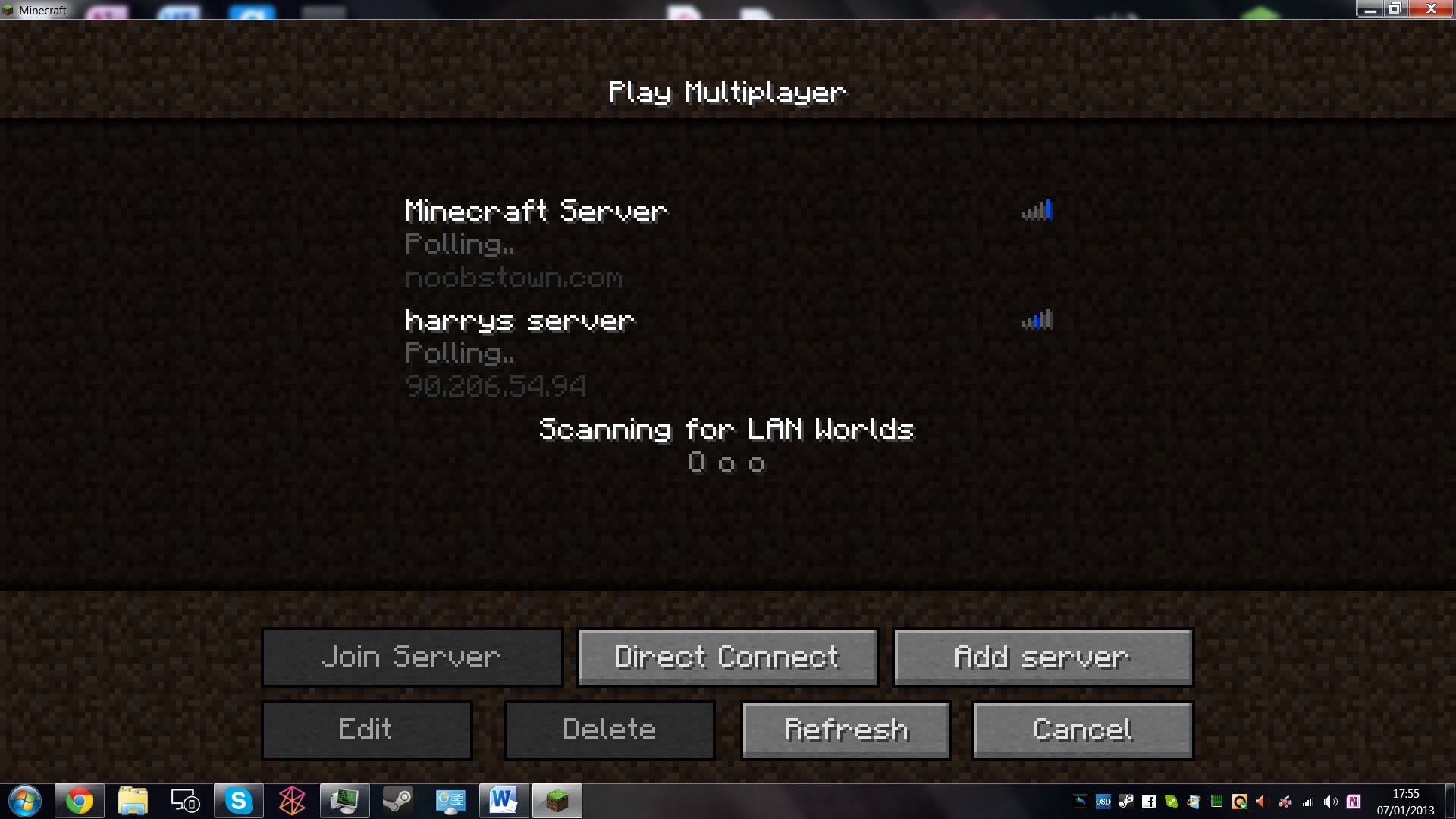 when i go to play multiplayer on minecraft it says i have no connection to any servers including my own. when i go to click on one of the servers my minecraft freezes and when i close it using task manager it says Java(TM)Platform SE binary is not responding.
