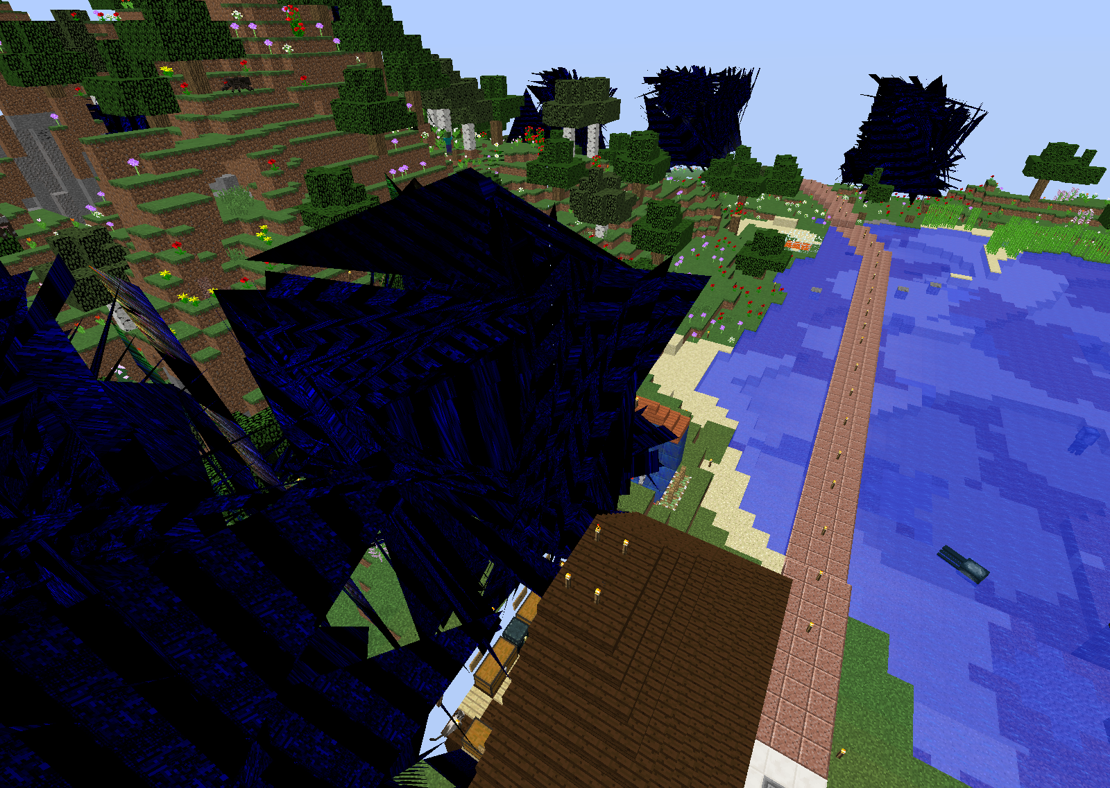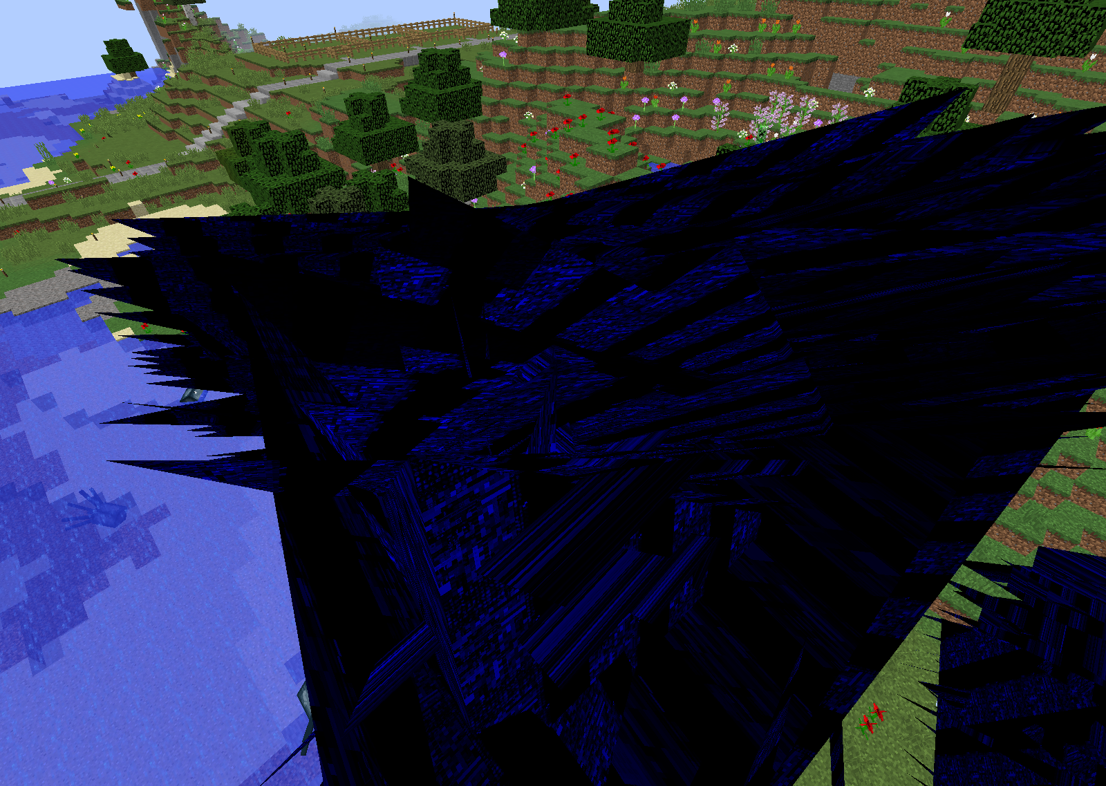 When I turn on VBOs, It turns random bunches of blocks into obsidian like prisms or shapes.