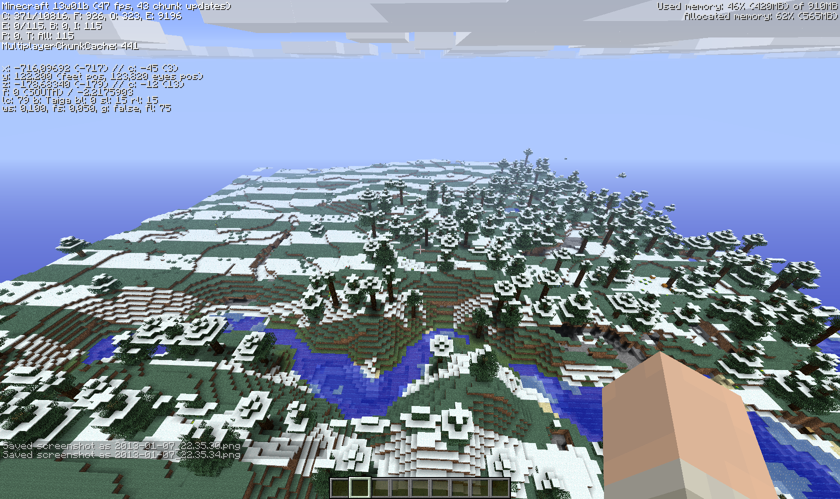 I was in a snow biome and searched for an other biome put i kept flying for like 5 minutes and the snow biome didnt end. until i got stripes of snow biome (see attachmend)