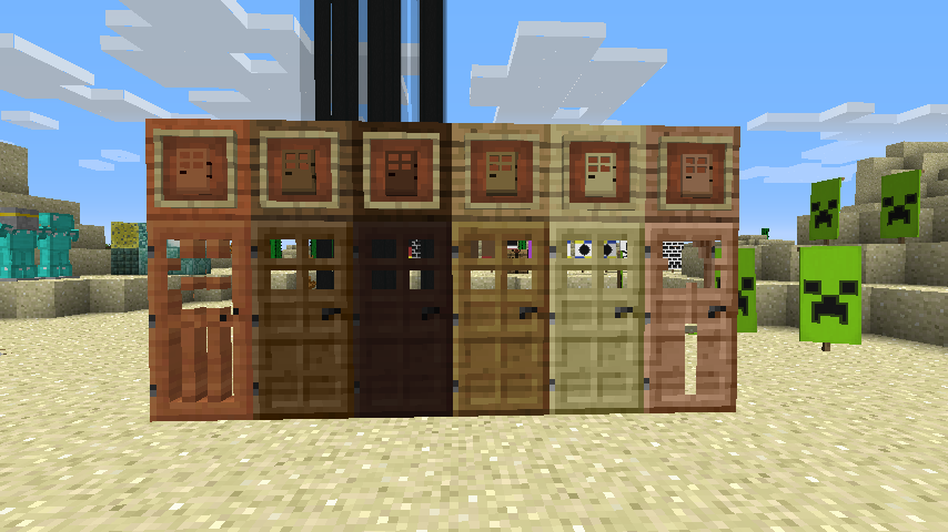 I wanted to make the door textures match the original oak door texture, but texture glitches resulted with the Acacia and Jungle doors and the Acacia and Spruce door item textures are also glitched (look at the sides). This is a custom resource pack that I used, not a mod. I only changed the textures, but I had trouble with editing the jungle door inner texture file.