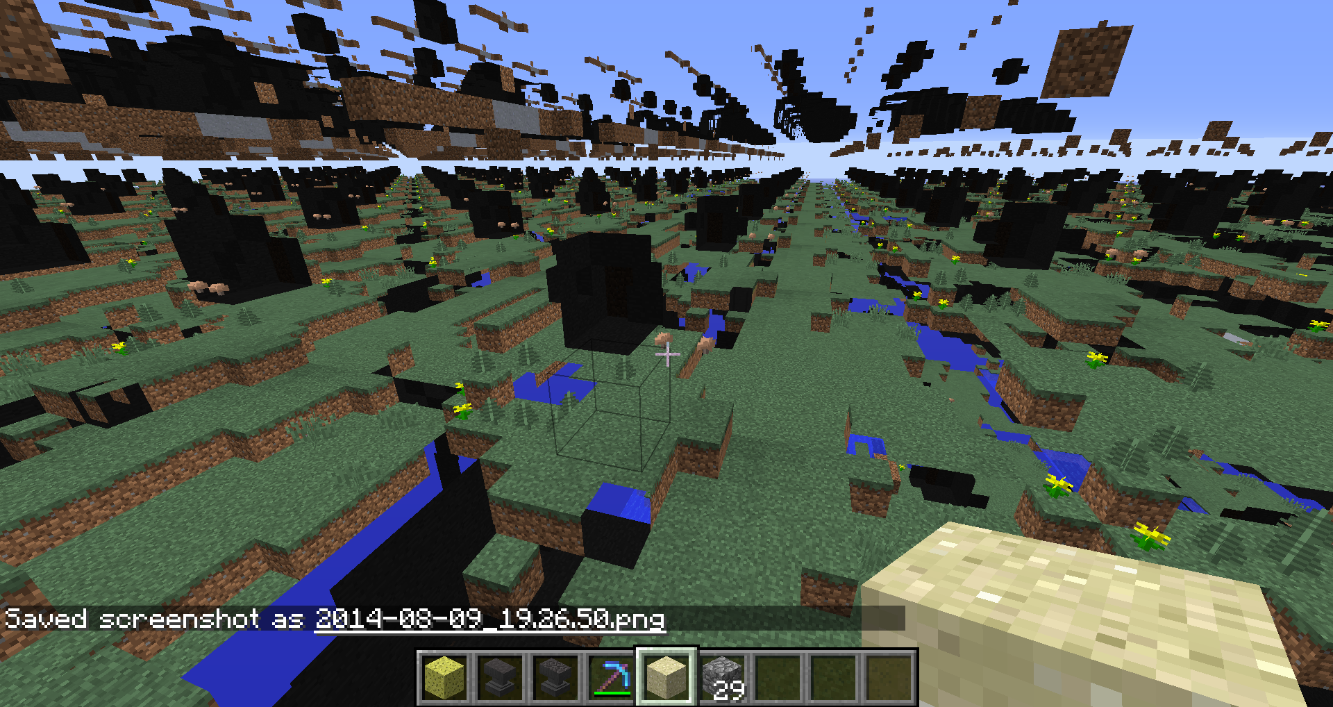 I switched my render distance to the max and all the other settings down to see how far I could see. This massive graphical bug appeared.
