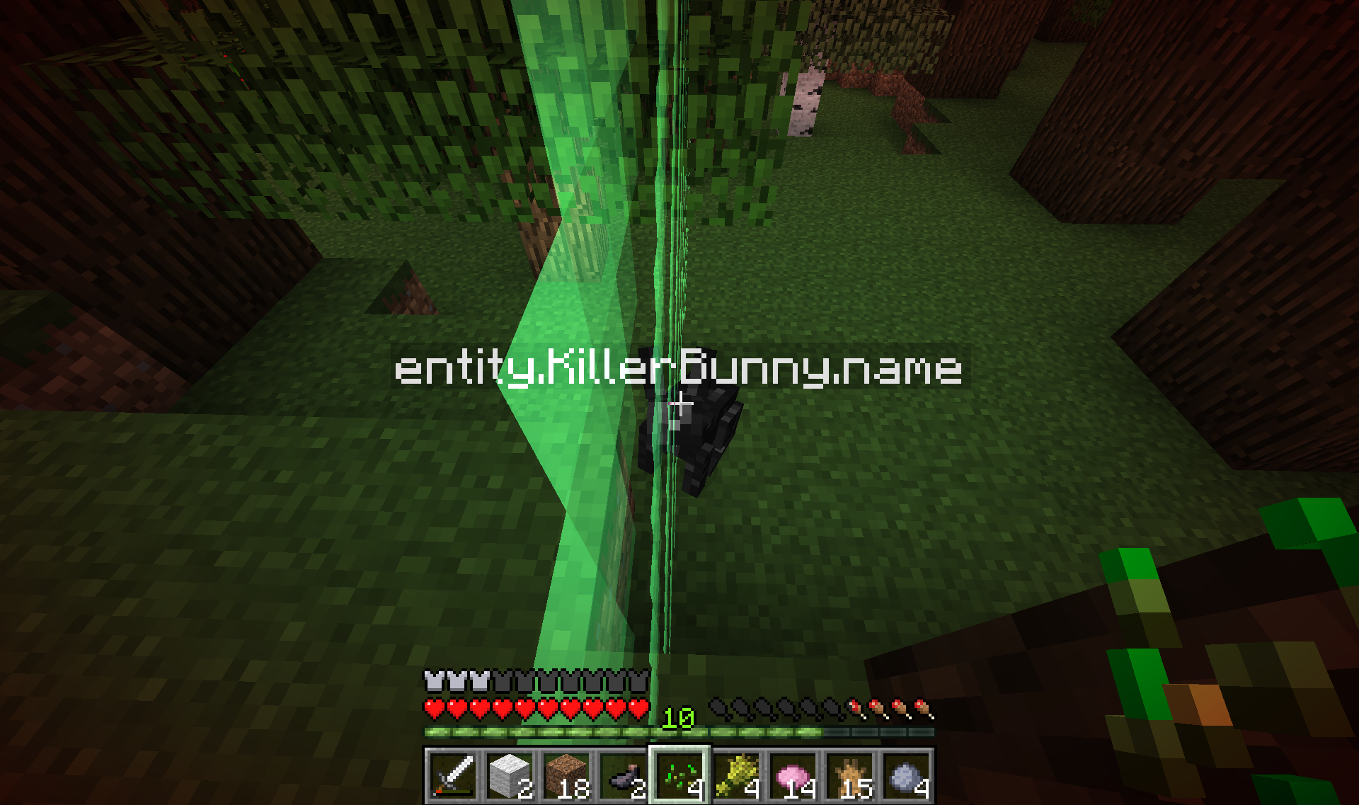 I think instead of a killer bunny, there spawned a black bunny with the name entity.KillerBunny.name