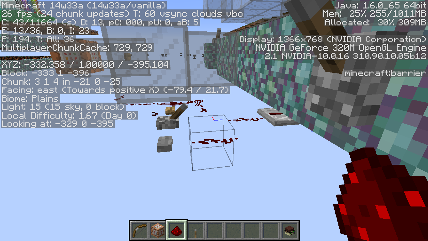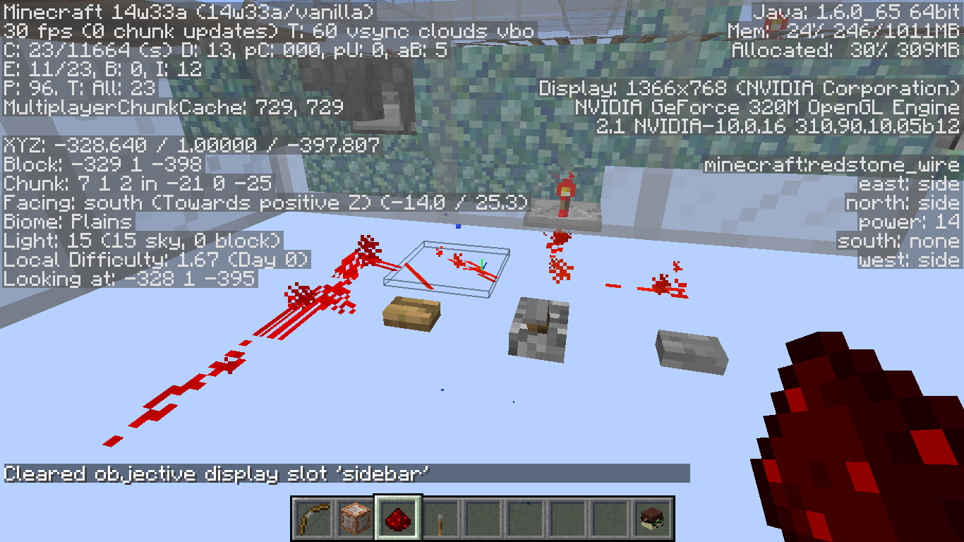 Not really sure what causes this, but it just looks weird, doesn’t change much if I break the redstone, just makes it bug out differently. Doesn’t affect my Mac really at all, although it does remind me of how similar things would happen out in the farlands back in 1.7.