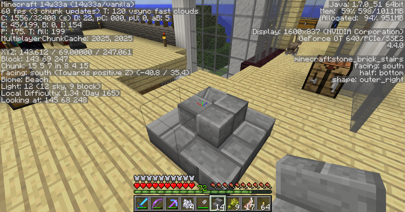 Logged in and First thing I notice is Stone Brick Stairs textures are kinda buggy... They seem to only be correct when they are placed when you are looking east.