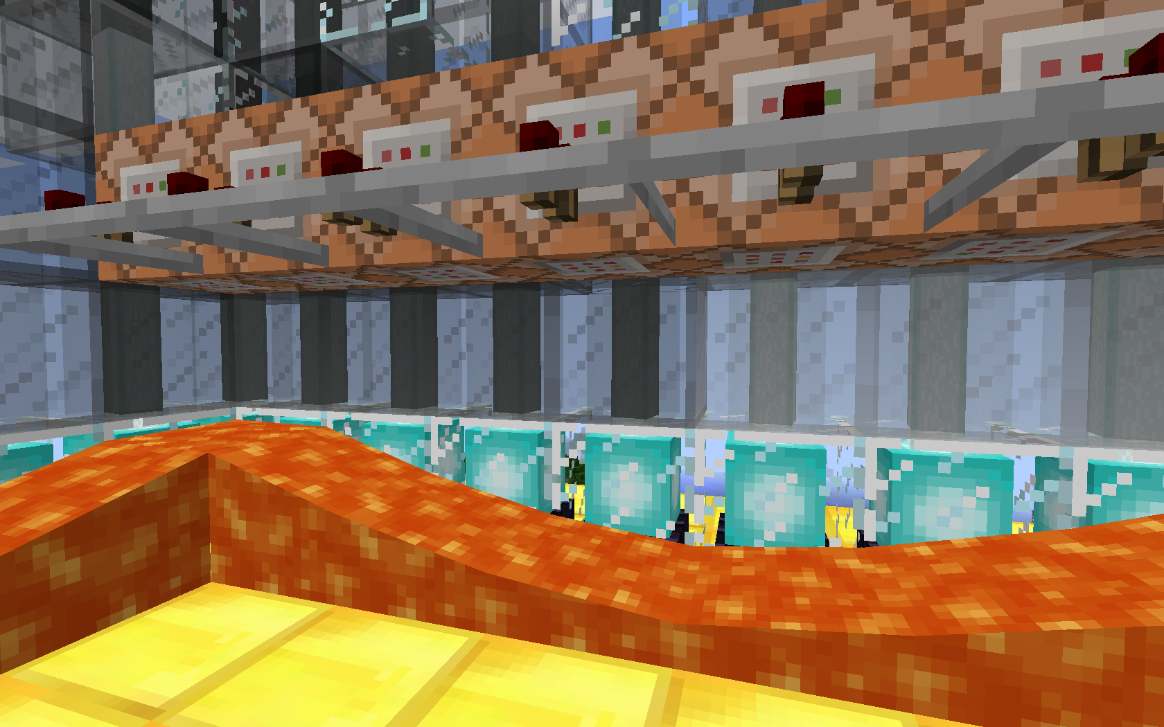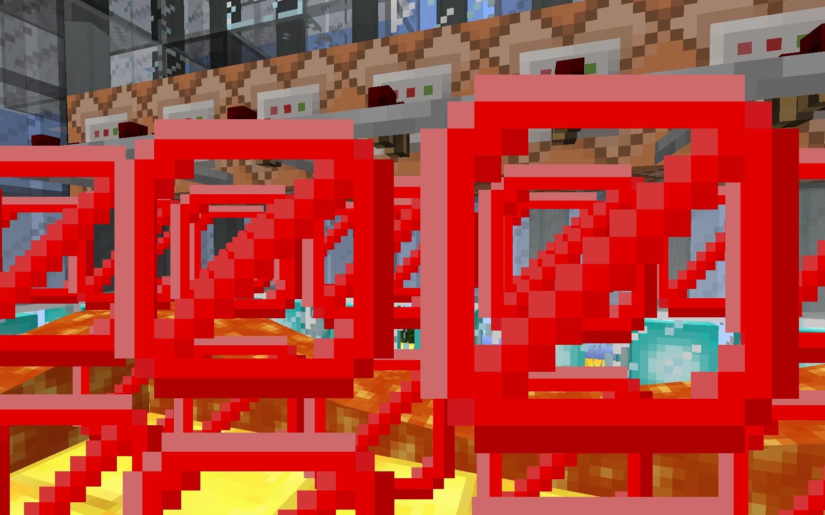 Likewise, redstone doesn't show through barriers from the bottom. See images. I didn't include one of the barrier "no" symbol this time. (Look toward the top, a little to the left; you can see the redstone particle effect from its being on, but the redstone itself doesn't render from this angle.