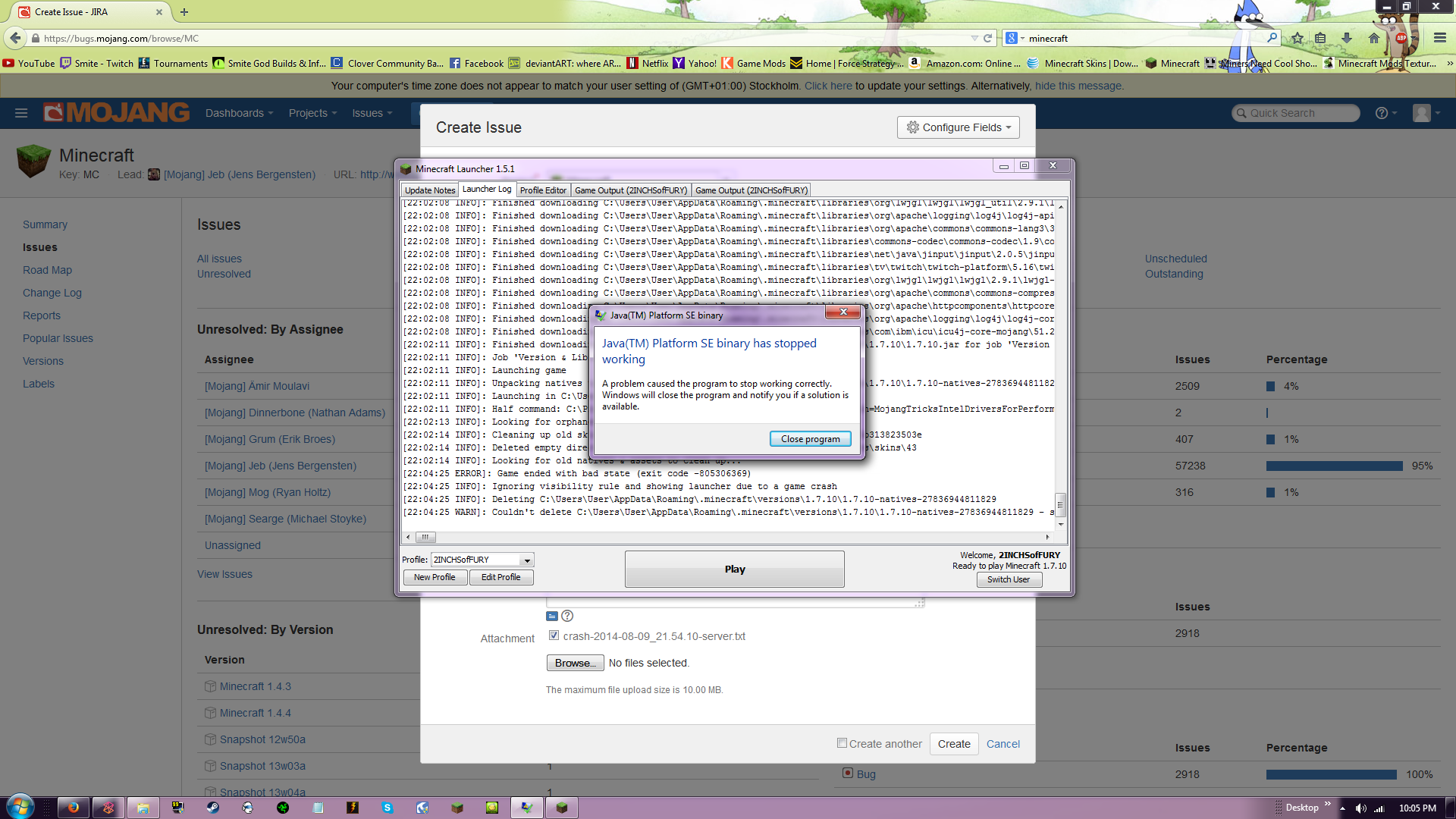 I'll mark it as a duplicate of MC-37075, however the issue is likely (if not partly) caused by the ancient java installation you have.