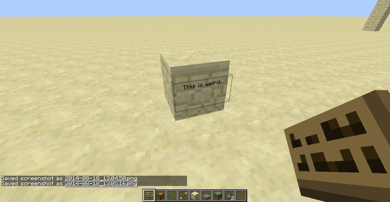 I tried placing a sign and... what? Where did the sign go!? The text is there! This may occasionally not work for some reason.
