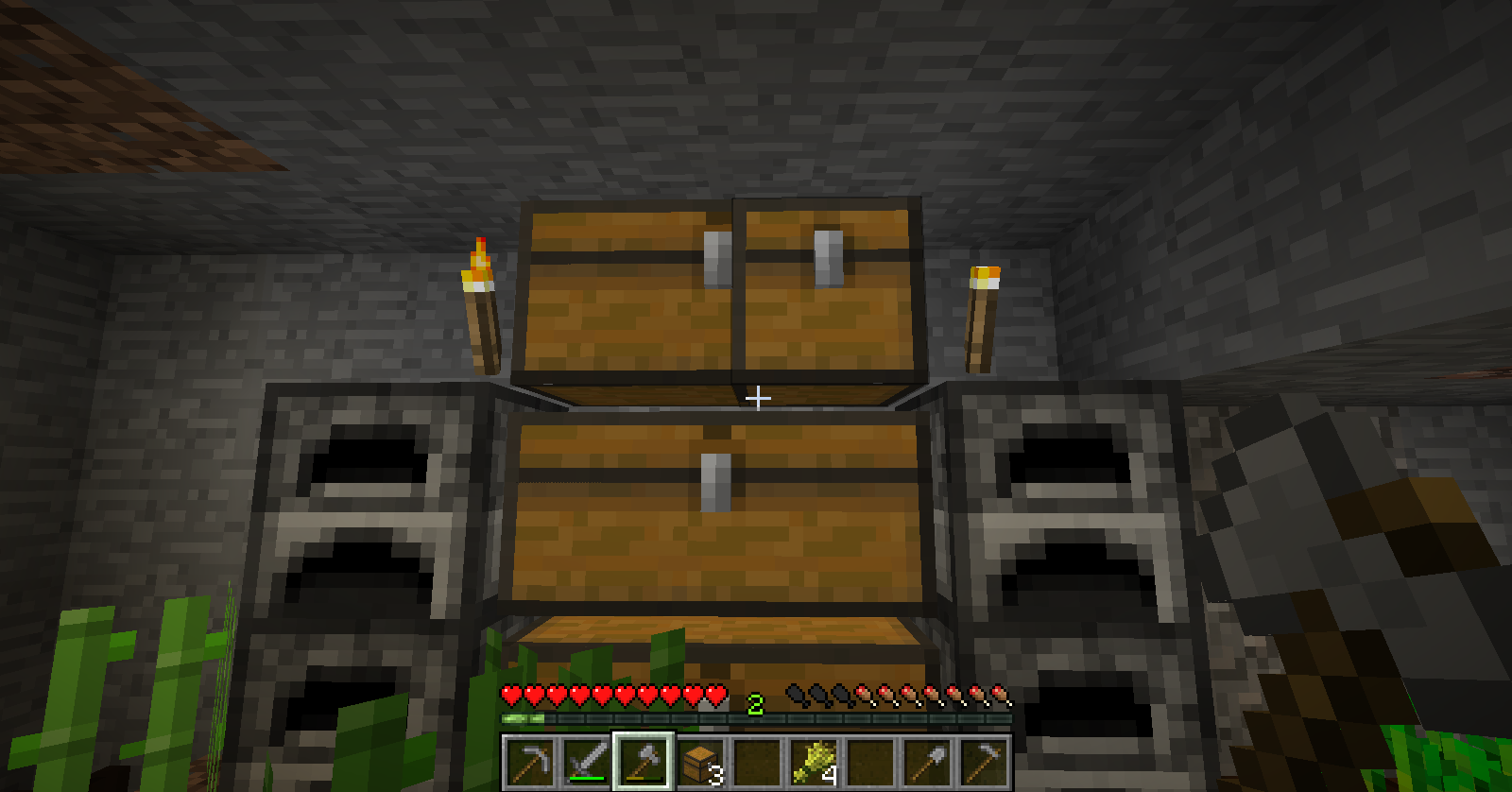 When I open a chest, I notice that the lid goes up, but at the same time, the chest looks closed, albeit with a lid sticking out of it. I did have chests stacked on each other when I observed this, and it was a double chest, backed against a wall. I played around a bit, and found that when breaking a double chest, the breaking pattern appears on both halves of the chest, although only the half you are mining breaks. And if it's a stacked double chest, a strange graphical remnant of the half you broke will remain, and when you break the other half, there will be a ghost image of a double chest where the one you broke was. I fiddled around a bit, and couldn't reproduce the bug at all, so I took some pictures, and attached them. Hope you can figure out what's happening.